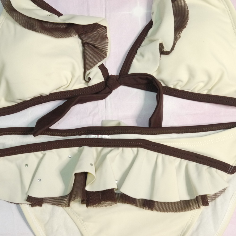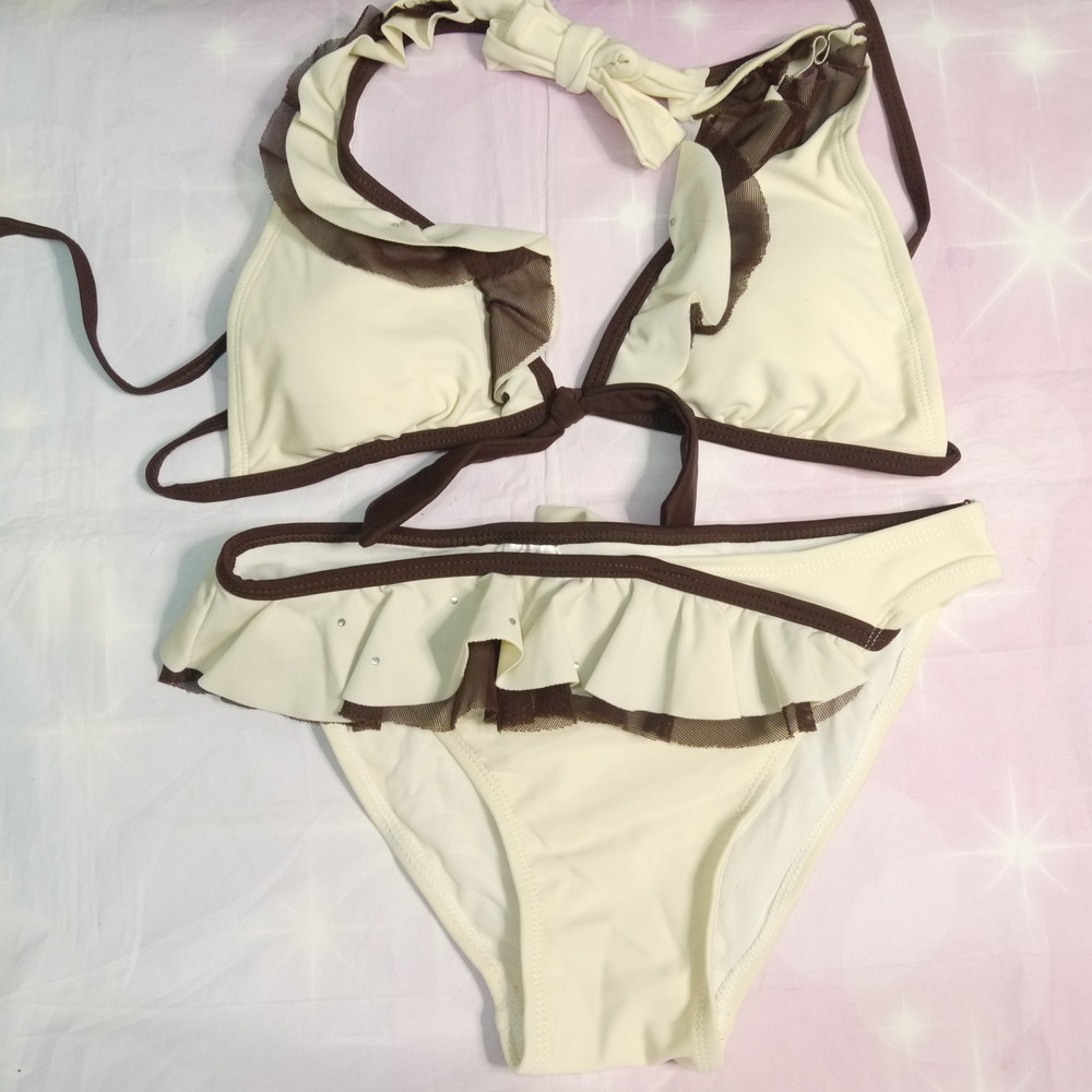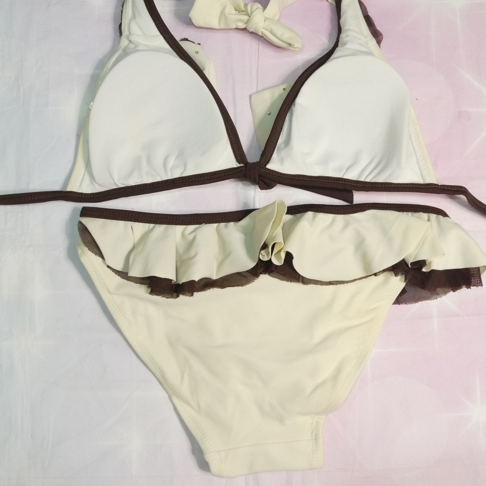 【Bランク/新古美品】BCカップ程 SMサイズ程度 ★ 日焼け肌に超似合うオフホワ フリル ノンワイヤービキニ