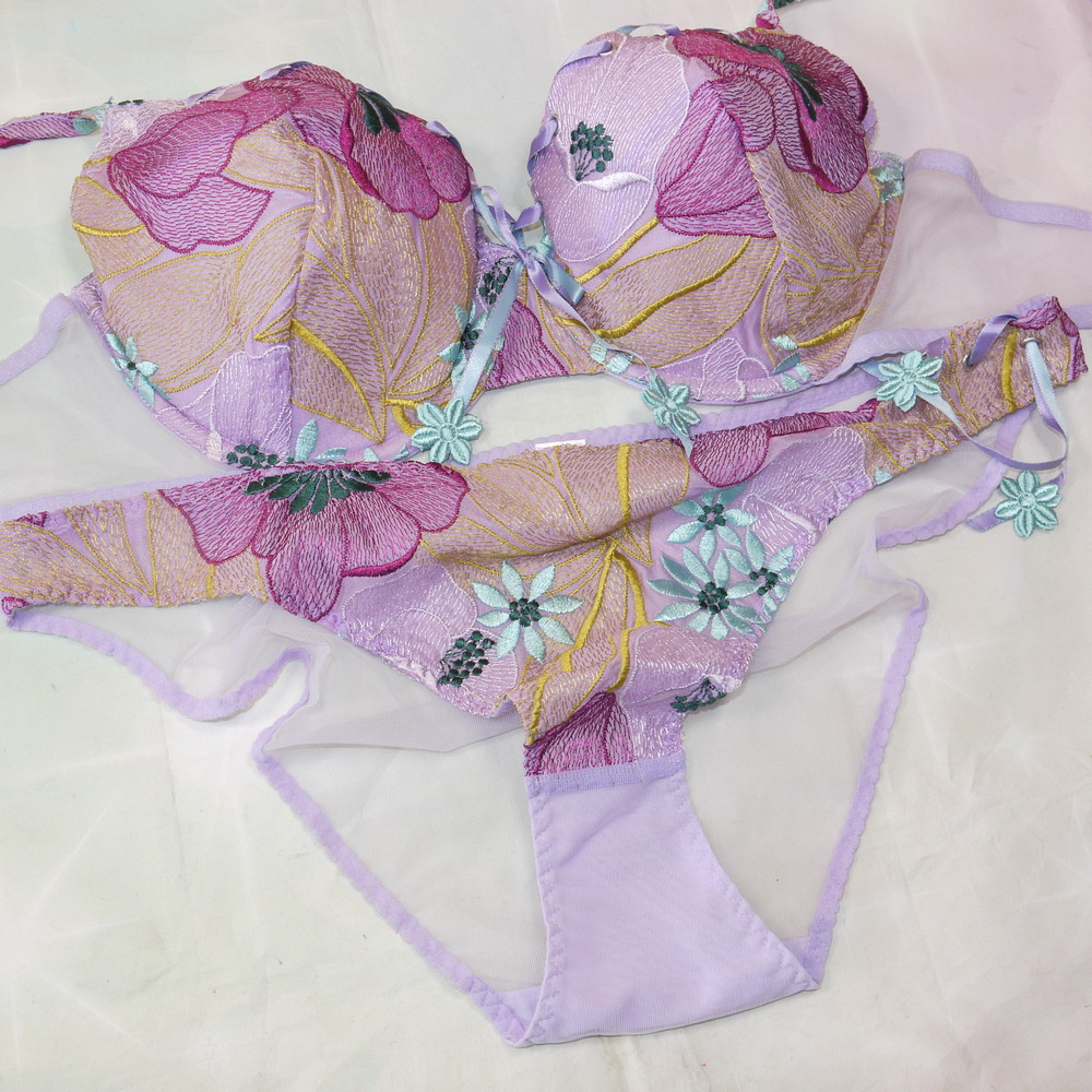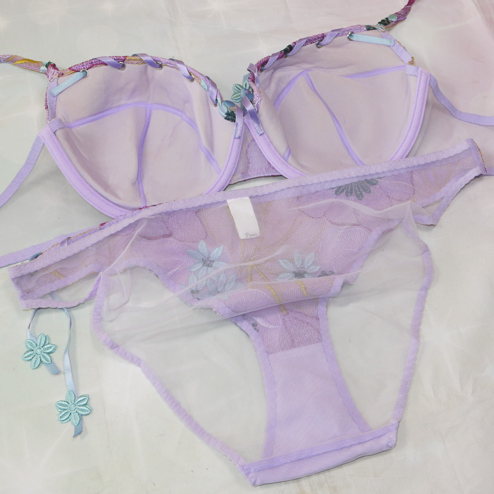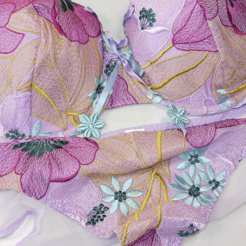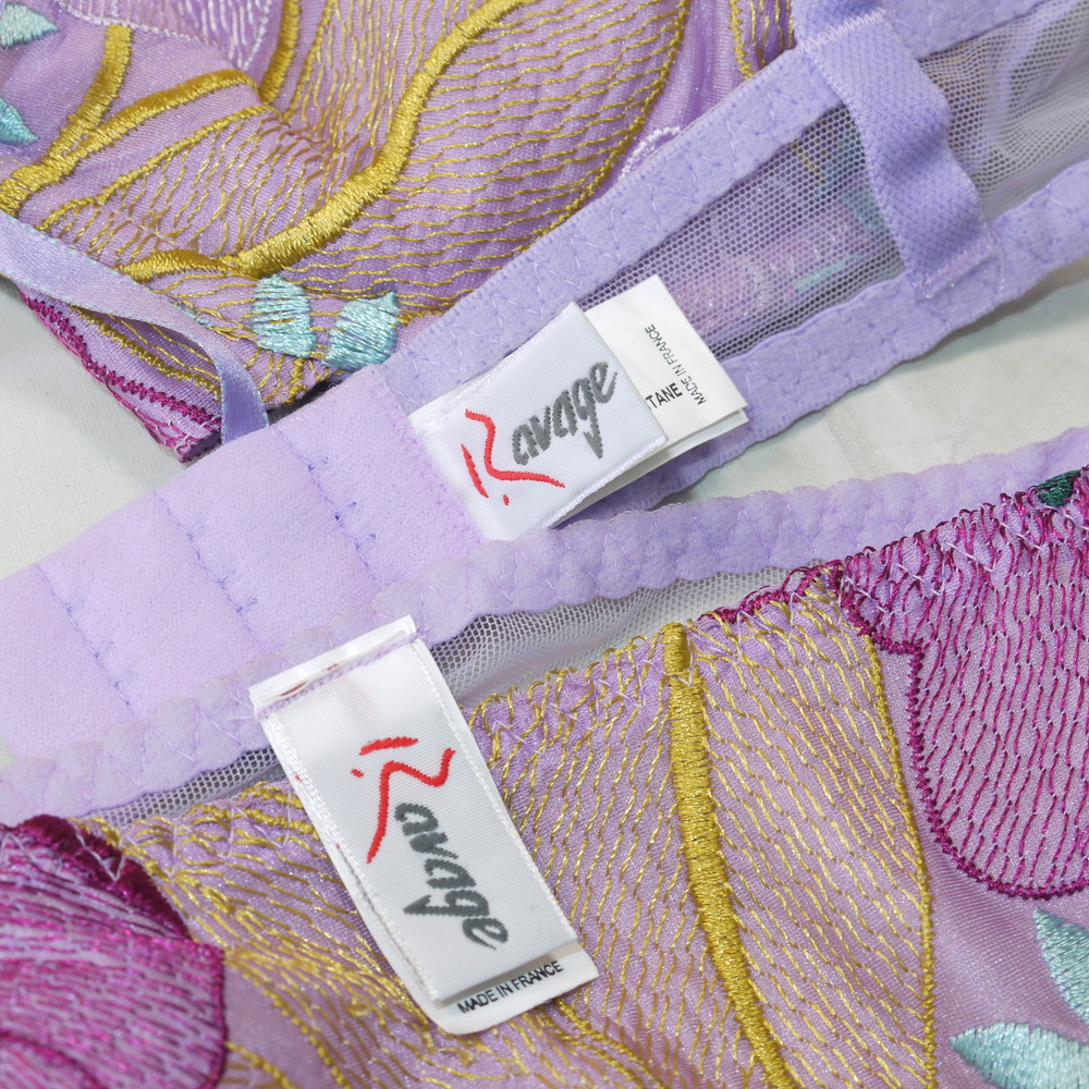 【Bランク/新古美品】Ravage:36D L表記(LL-3L) ★ 高貴な紫×大輪花 透尻SEXY PBセット