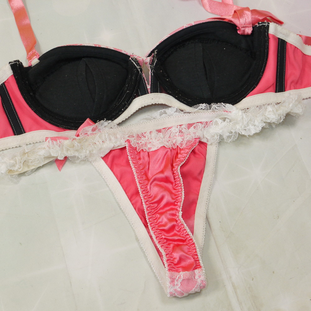 【BCランク】RAVIJOUR:B65-70 MLサイズ程度 ★ 出ました激レア!ロリピンク×サテン 白レース T ギャル PBセット