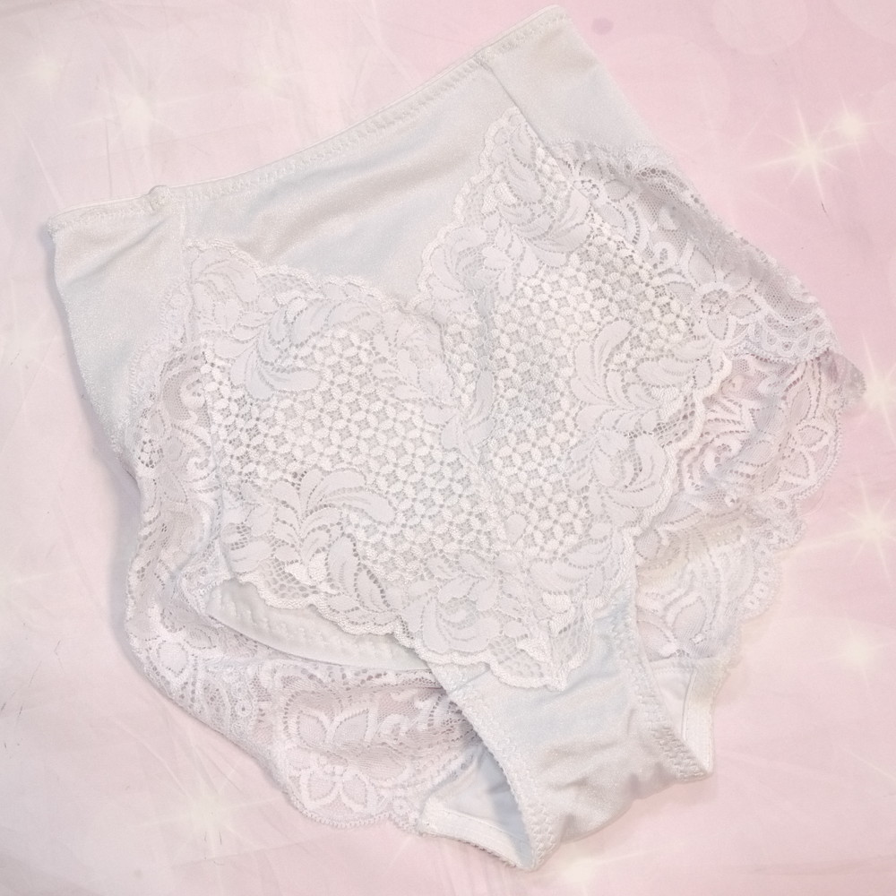 【Bランク/新古美品】日本ニット:MLサイズ程度 ★ 清楚ライトブルー 花レース 垂尻UP ガードルショーツ