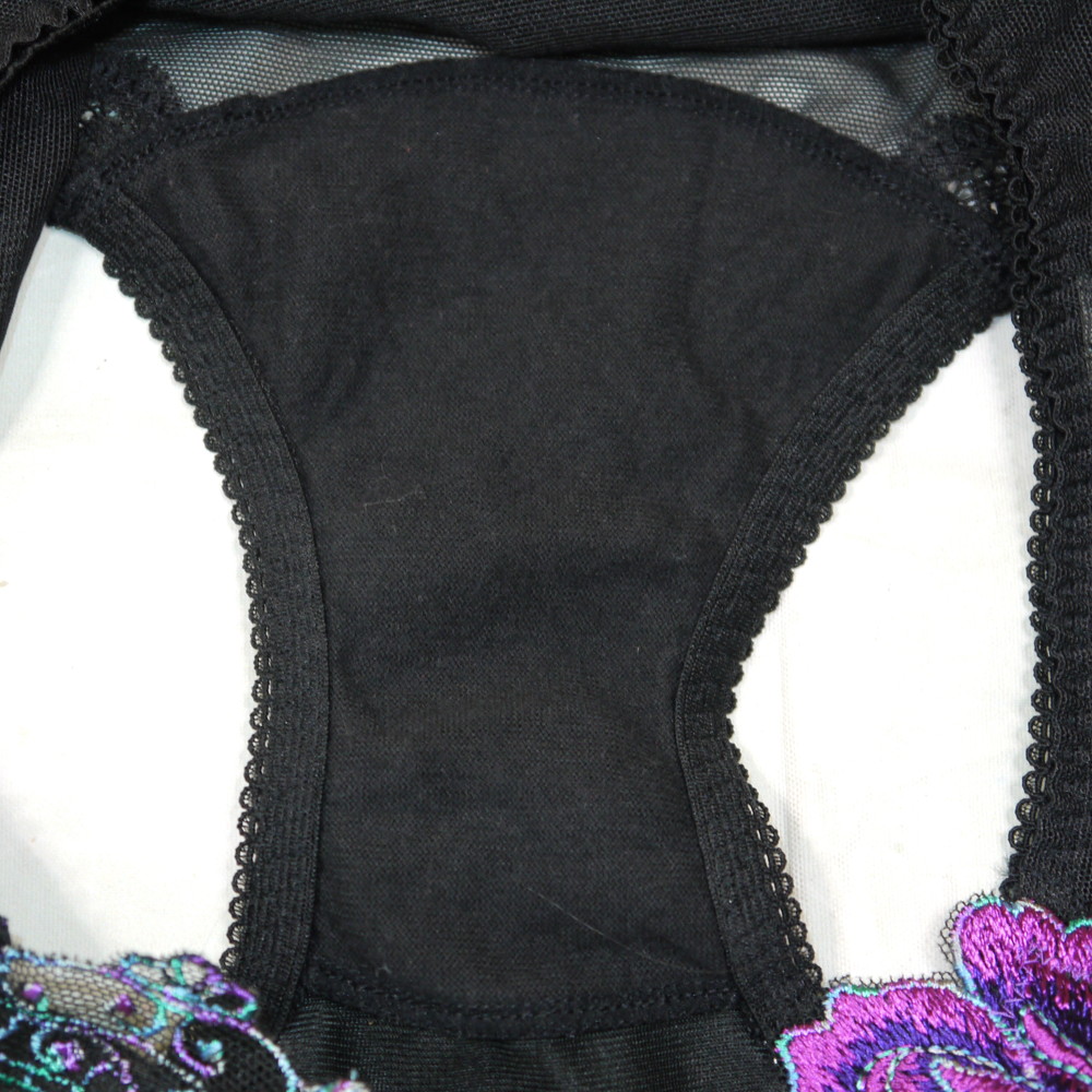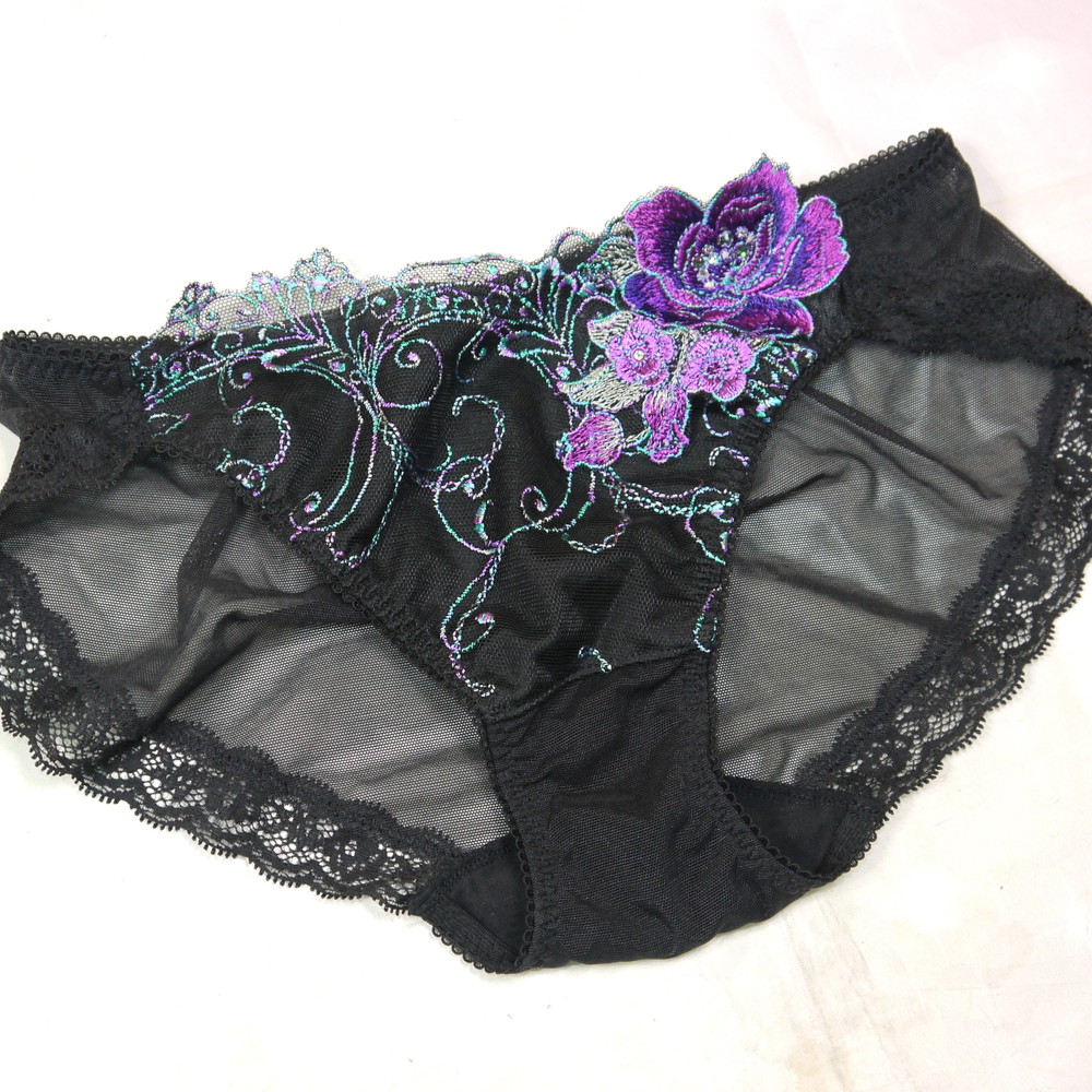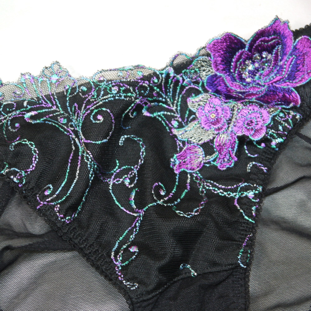 【Bランク/新古美品】サルート 84G:Lサイズ ★ 妖艶黒×紫薔薇 スワロフ 透けショーツ