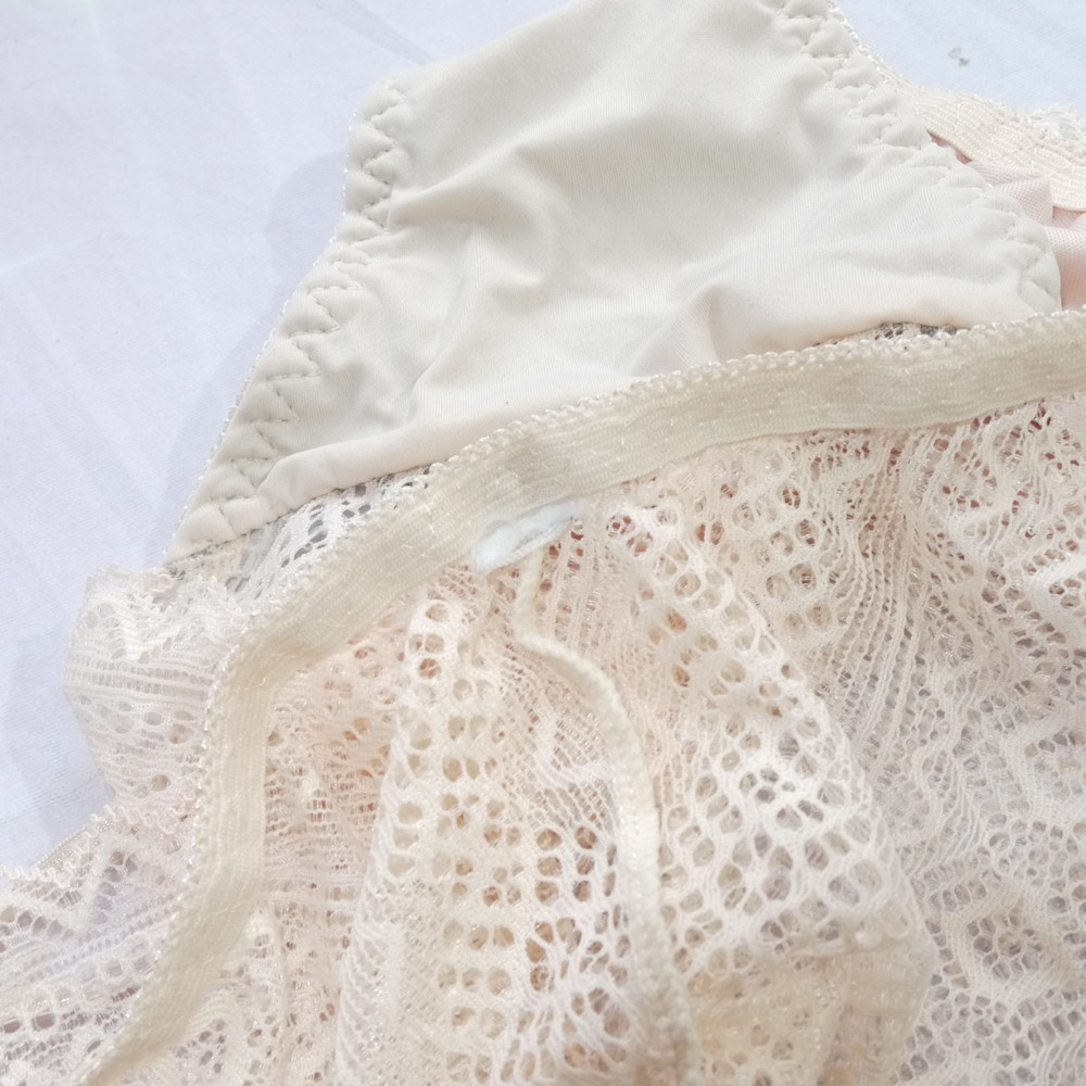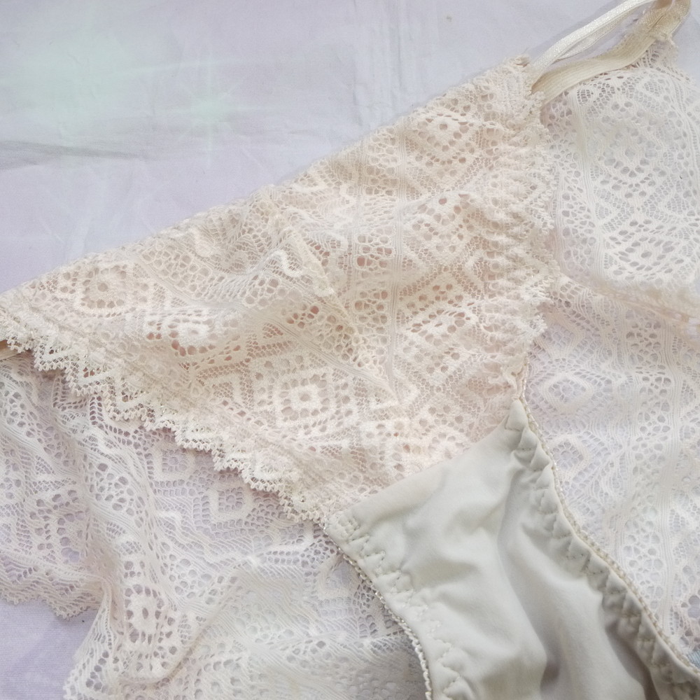 【Bランク/新古美品】ML程度(伸縮抜群) ★ 清楚ライトヌード×透かしレース お嬢様系パンティ