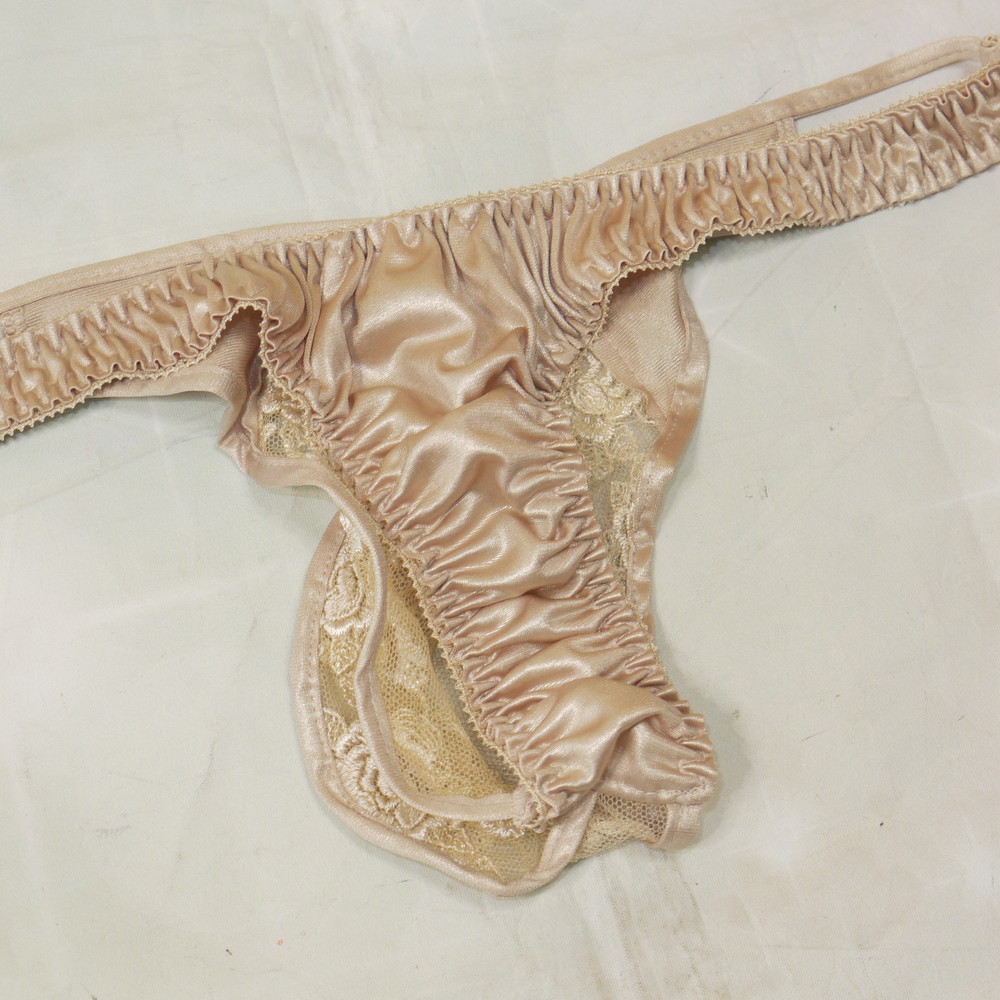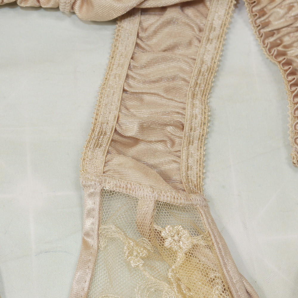 【ABランク/未使用?】La-pomme:メンズLサイズ ★ 高級ゴールドベージュ×花刺繍 透けフロント T