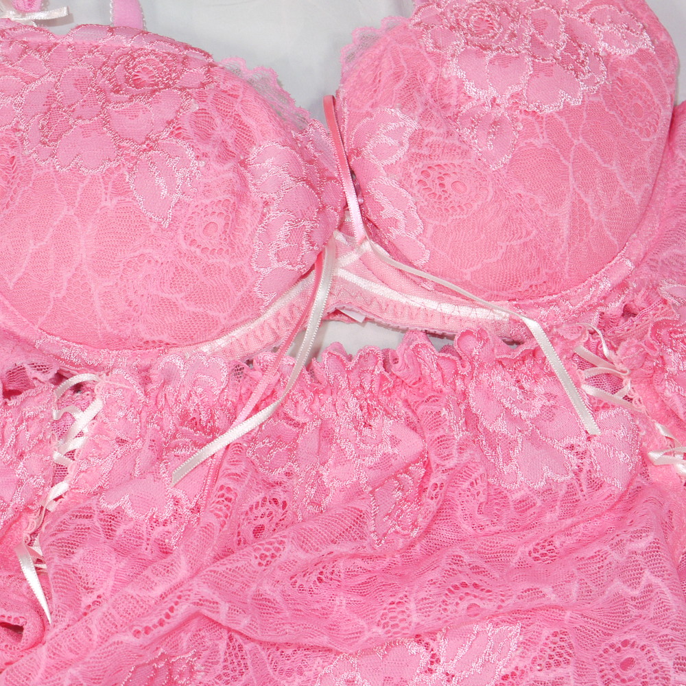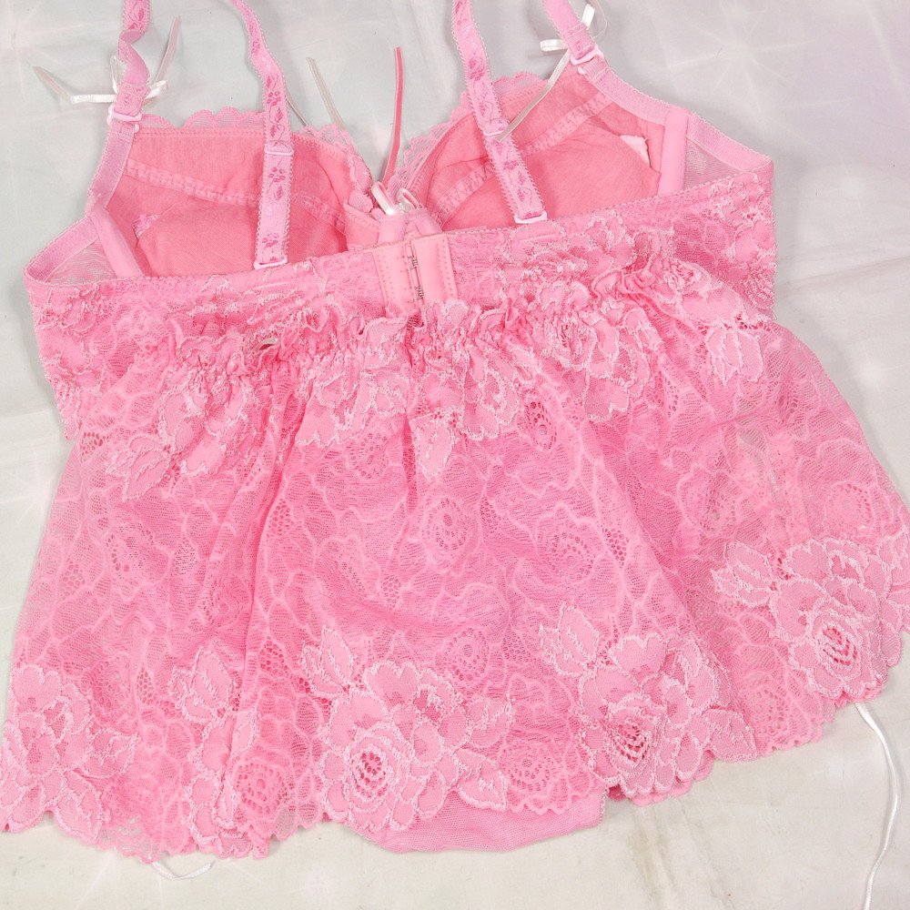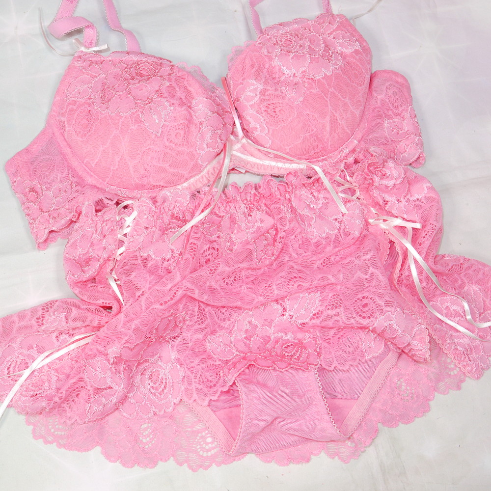 【Bランク/新古美品】IMAGE:B75*88 Mサイズ ★ ロリっと可愛いピンクレース お嬢様系ランジェ PBセット フリルスカート付