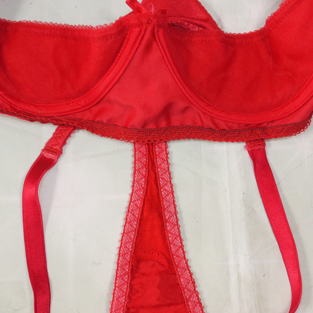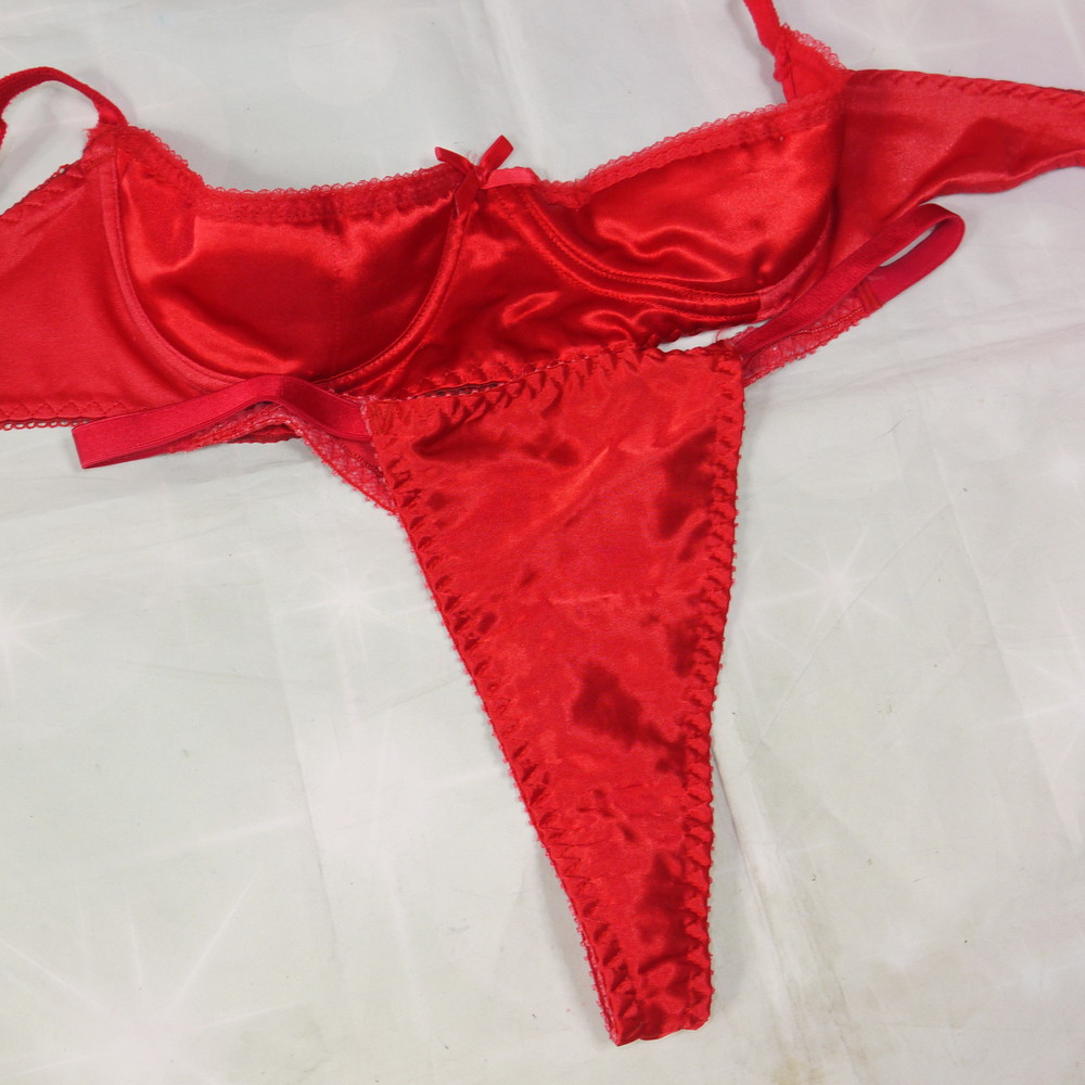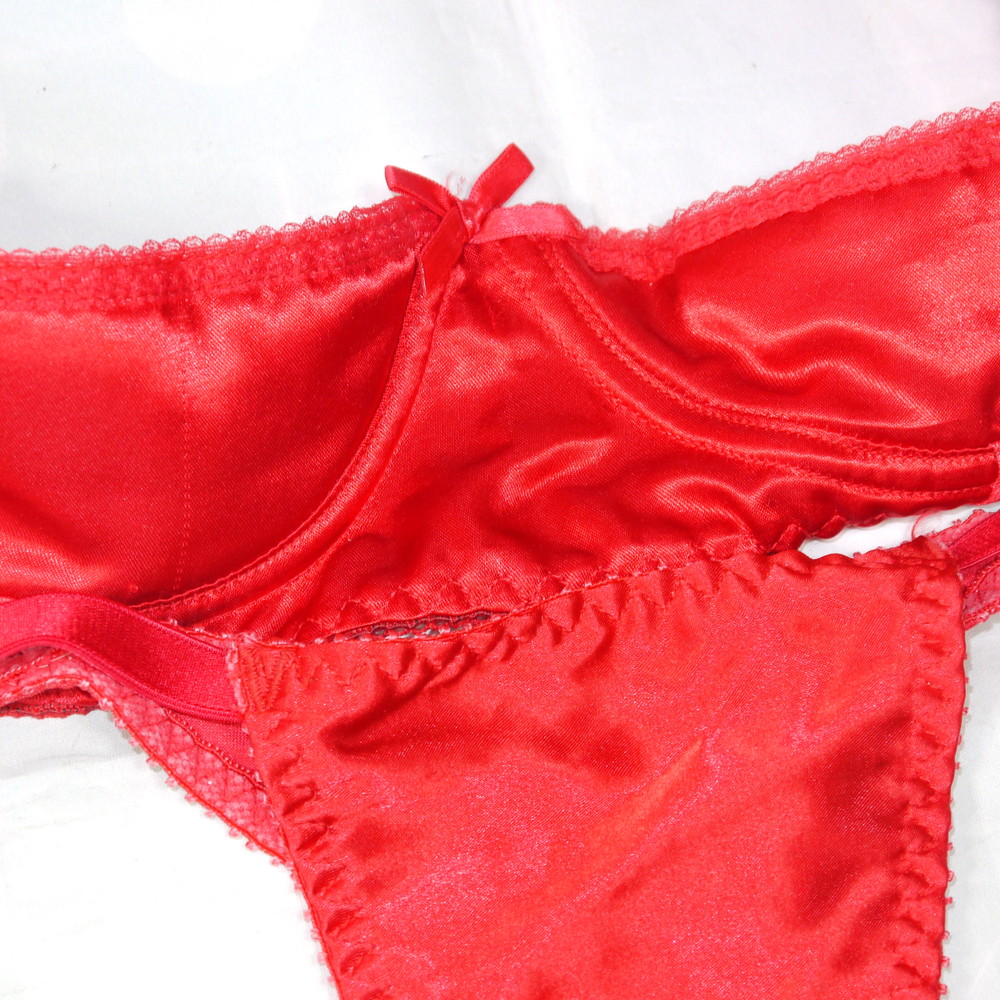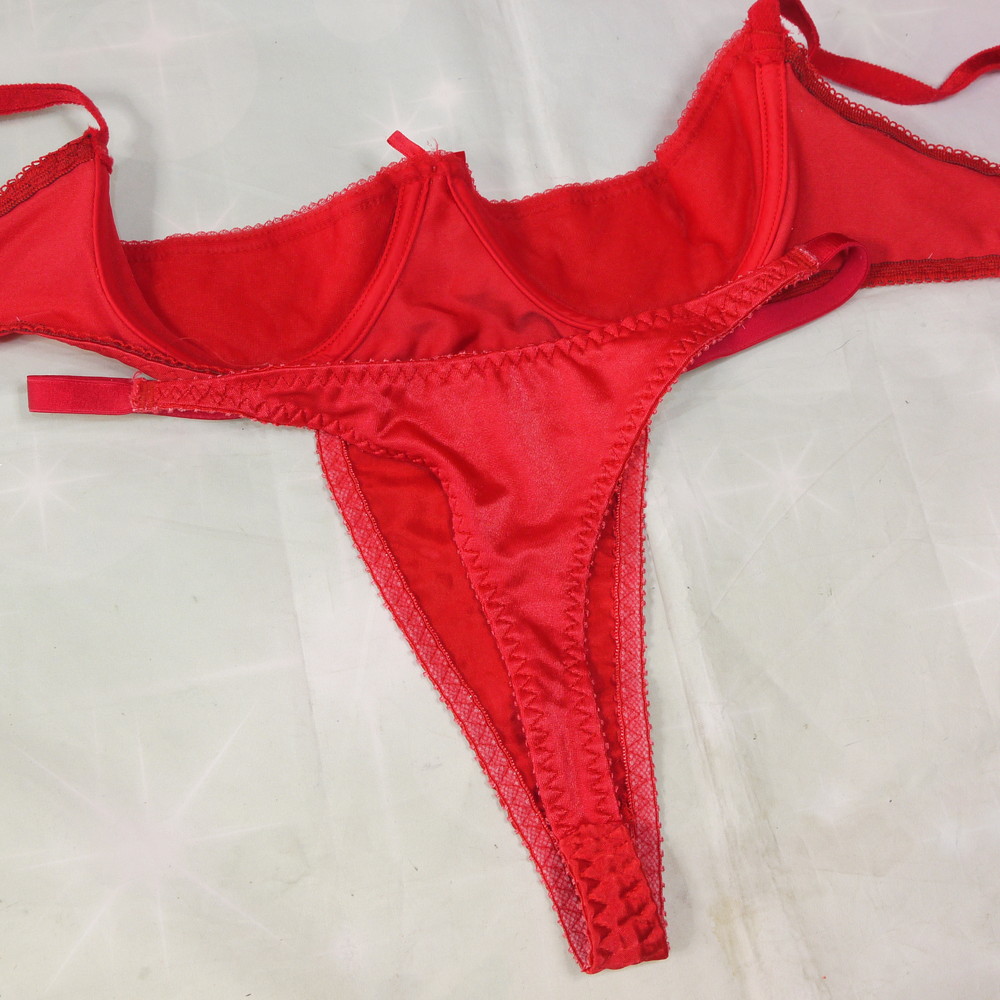 【Cランク】EMPIRE INTIMATES:36(CDカップ程) S(MLサイズ程度) ★ 光沢つるつる赤 はみ出るお胸ハーフカップ T PBセット