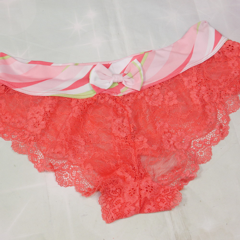 【Bランク/新古美品】MLサイズ程度 ★ 夏ギャル系のド派手なオレンジ マーブルウエスト 透けショーツ