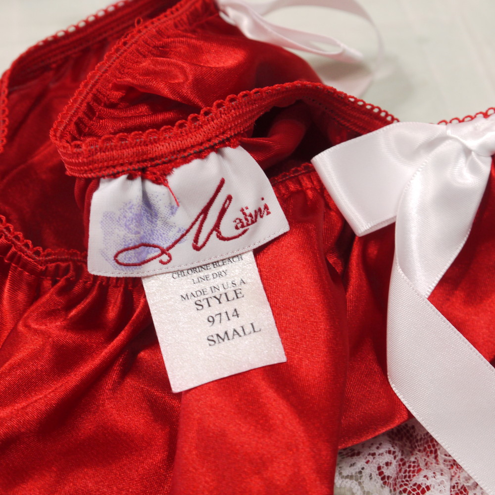 【Bランク/新古美品】Malini:S(伸縮抜群) ★ シルク調の極上甘とろ感 赤サテン 姫パンツ ナイトペチ風P
