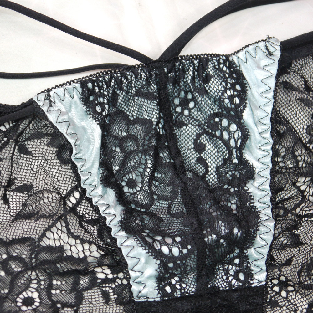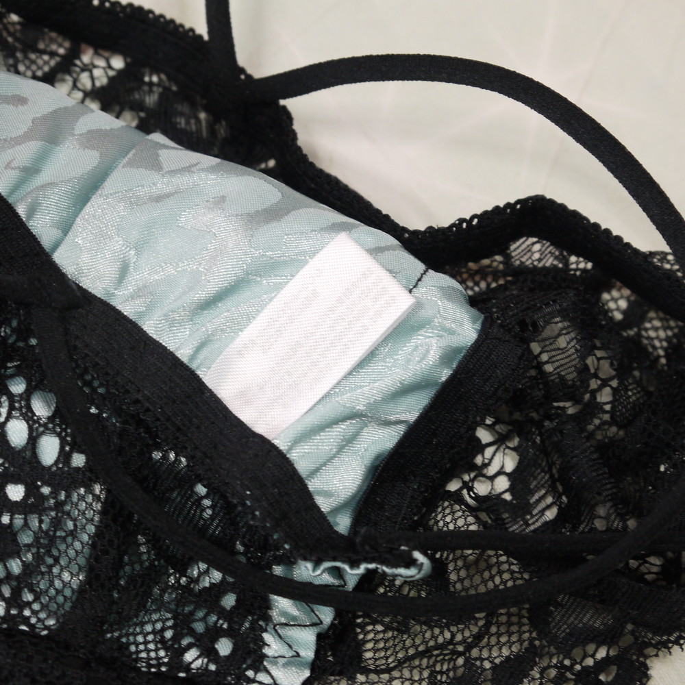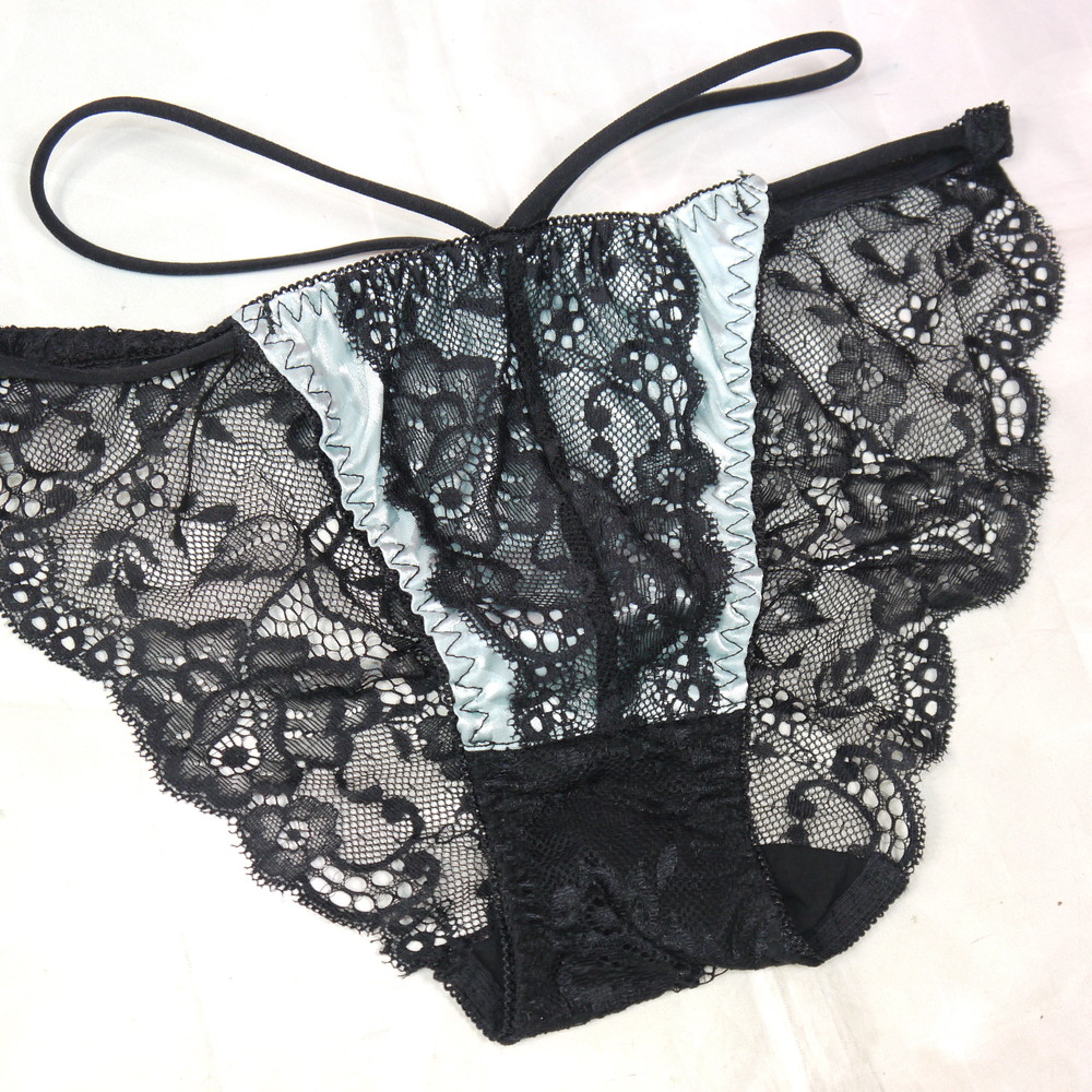 【ABランク/未使用?】サンロード:MLサイズ程度 ★ 光沢サテン×ミント 黒レース お姉ギャル・キャバ系パンティ