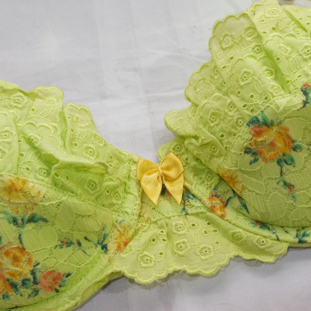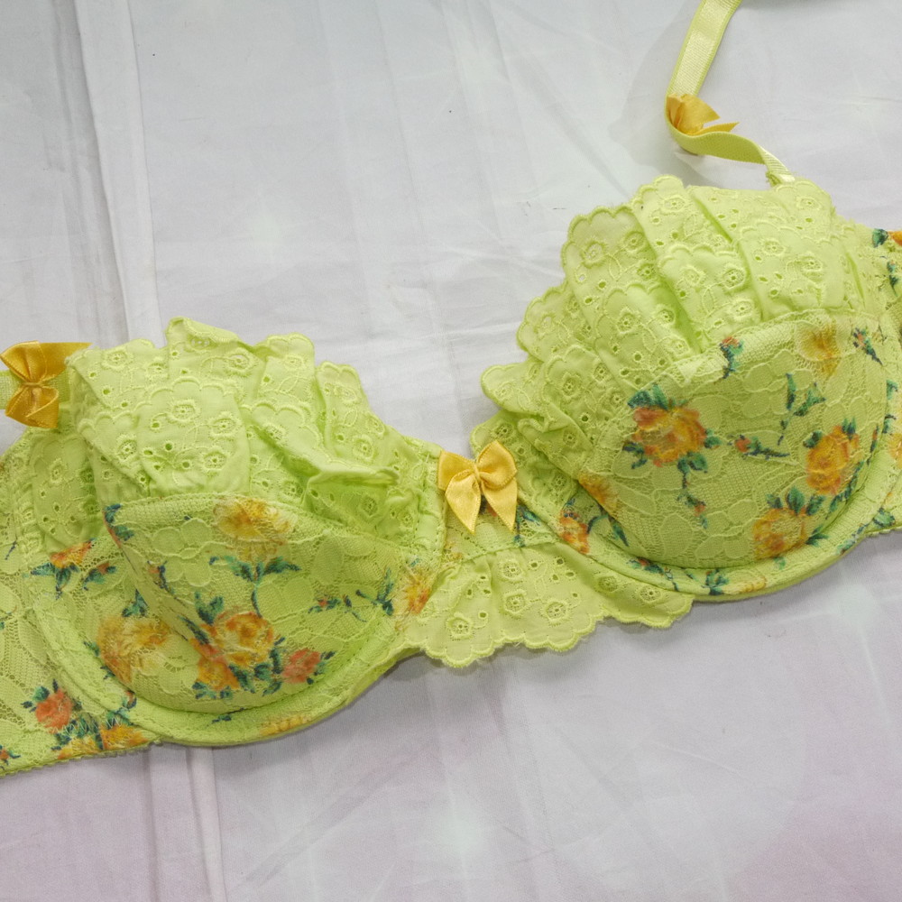 【Bランク/新古美品】IMAGE:A75*85 ★ パキっとグリーン×綿レースデザイン お嬢様系ブラ