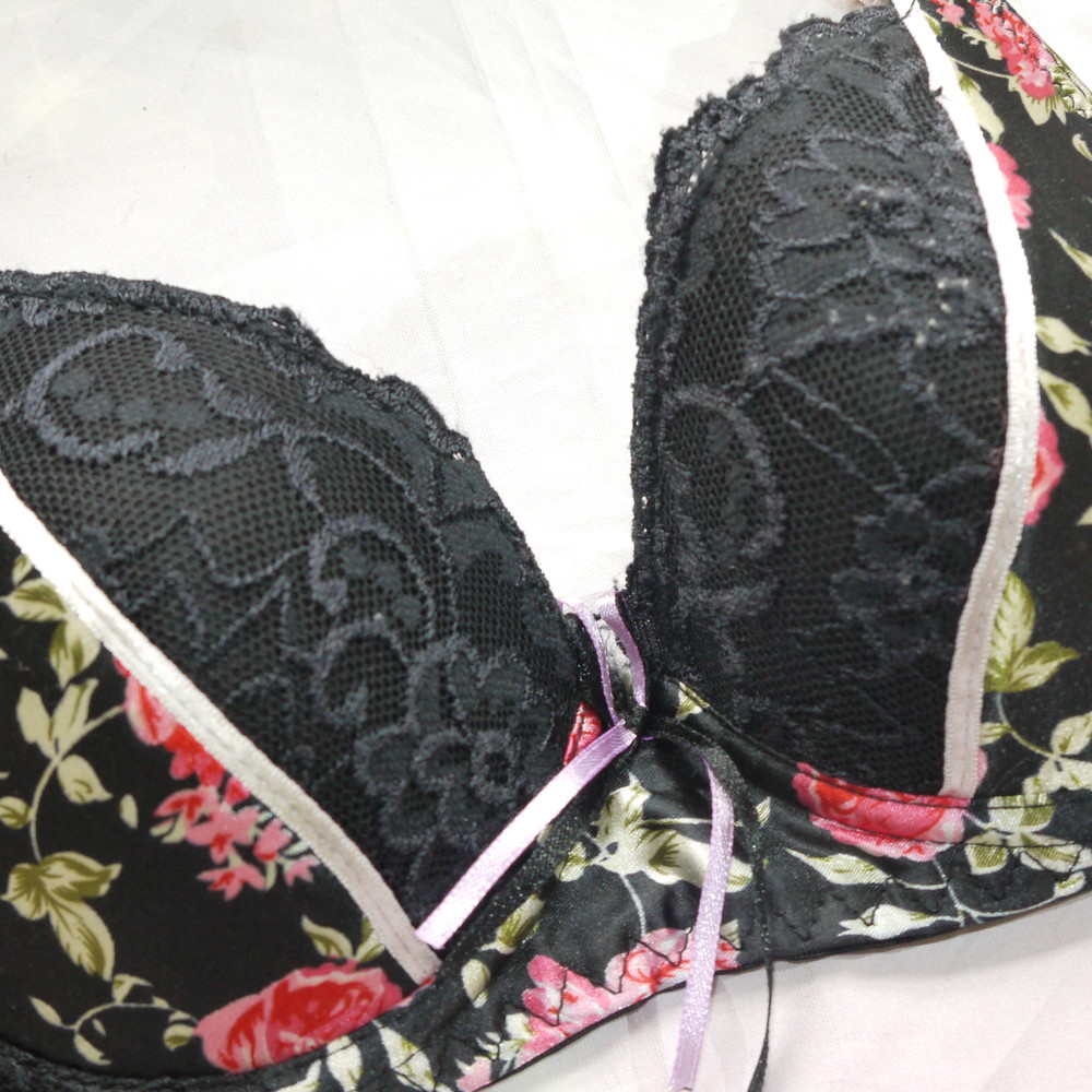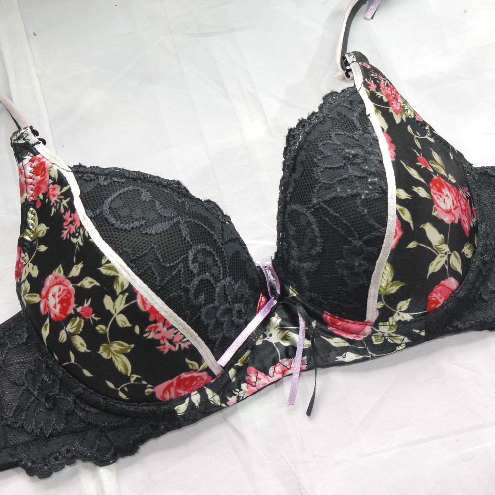 【Bランク/新古美品】Water Fish:B70*83 ★ お姉様度UPの黒×ヴィンテージ薔薇 希少厚盛 丸胸ブラ