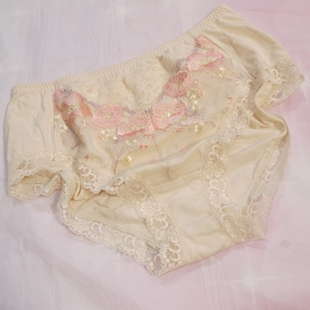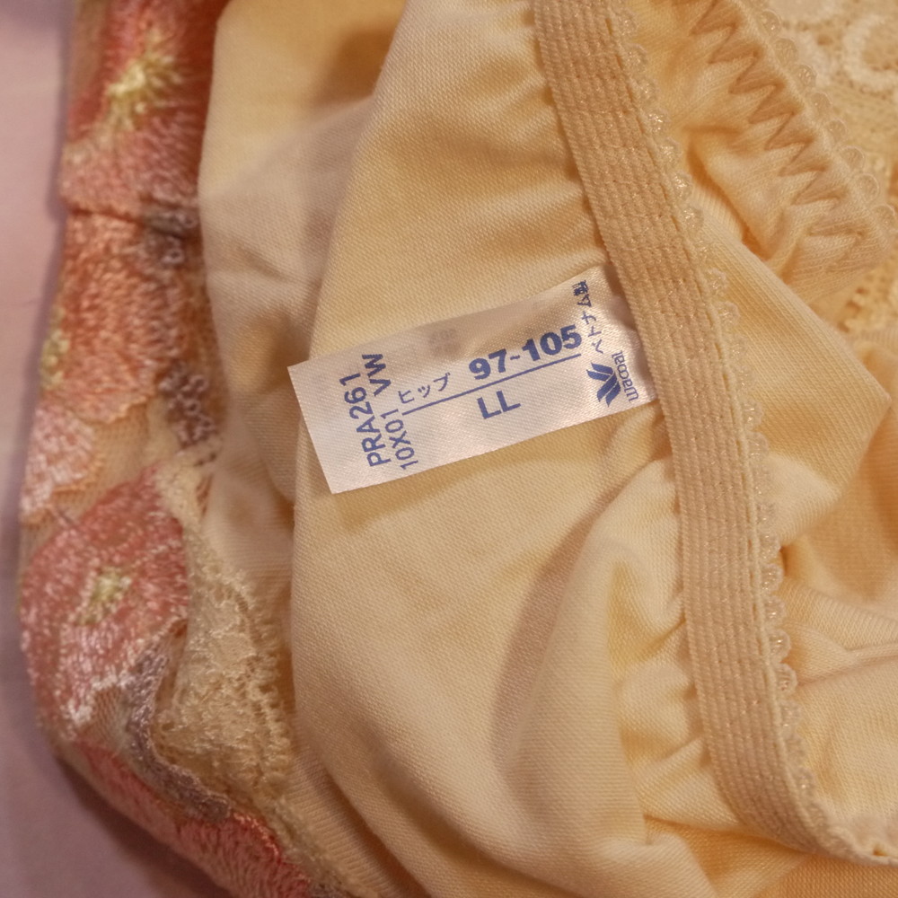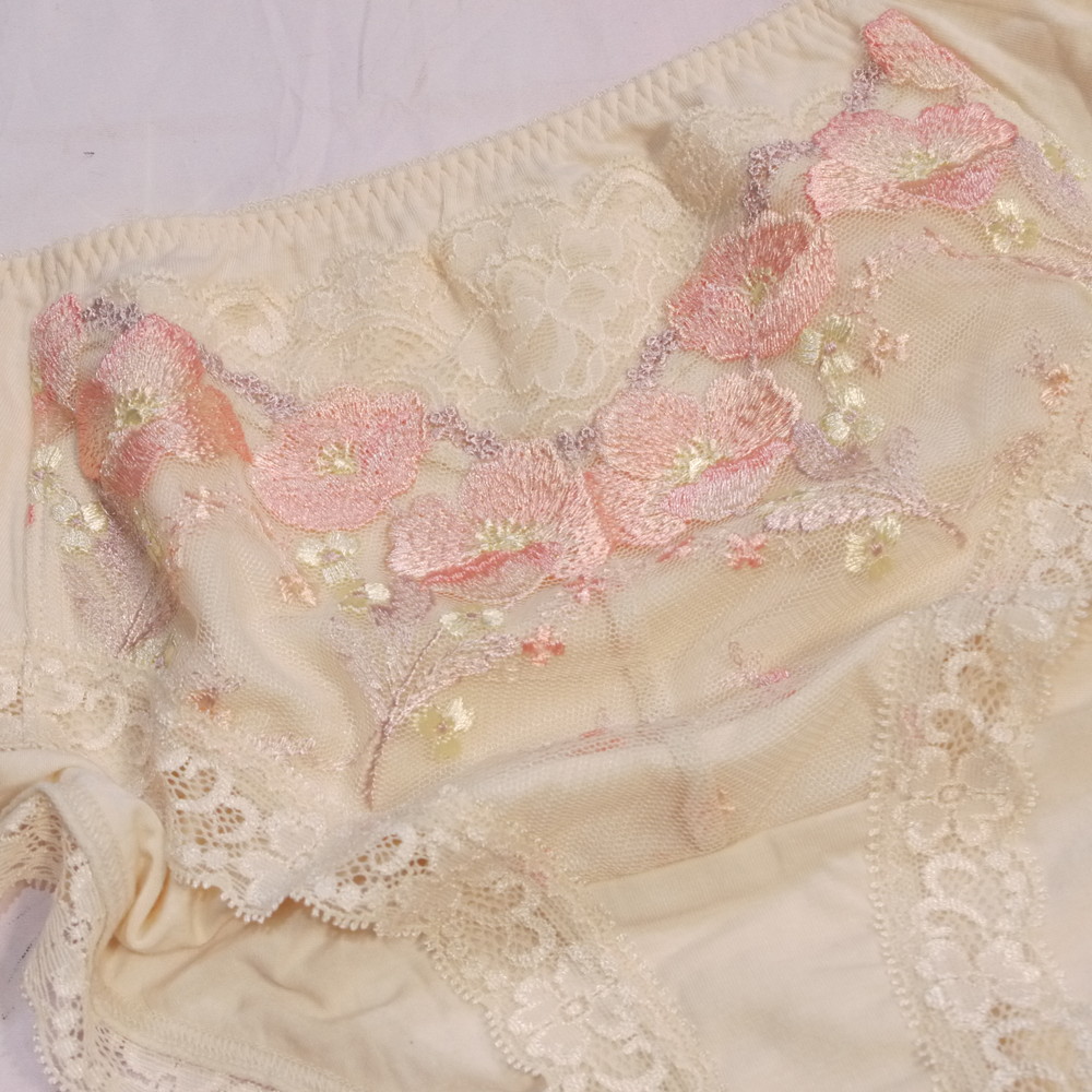 【Bランク/新古美品】ワコール:LLサイズ ★ 大人淡ベージュ 肉感メガ 厚手花刺繍 マダム系ショーツ