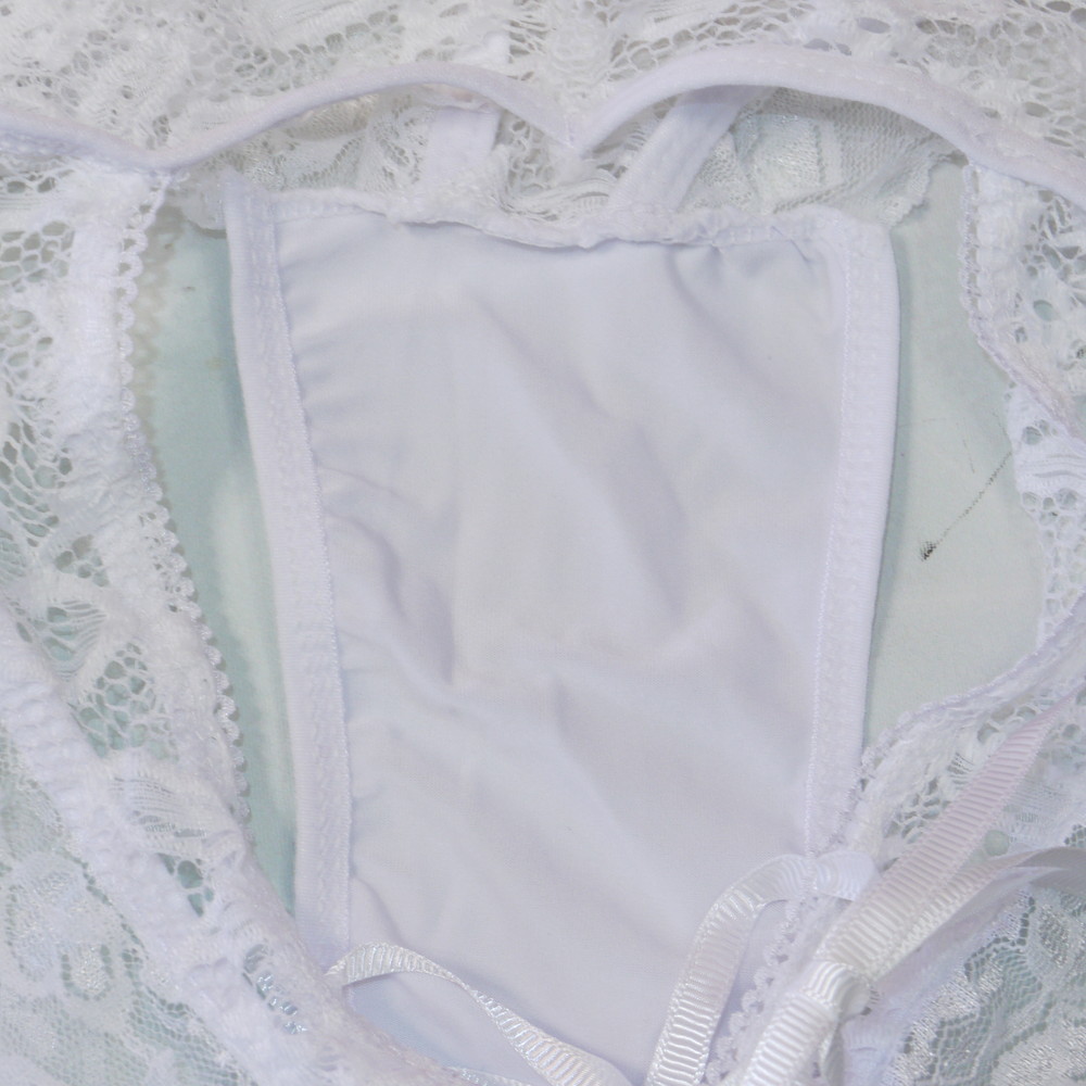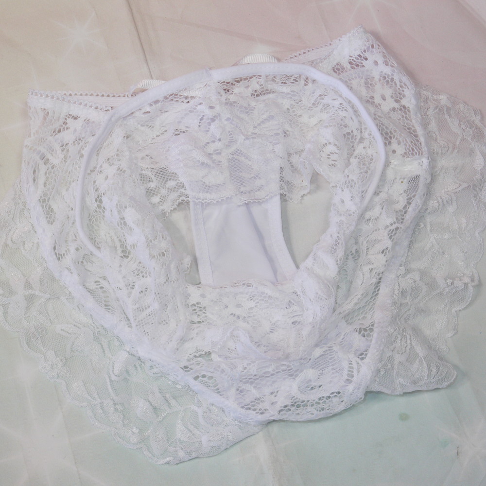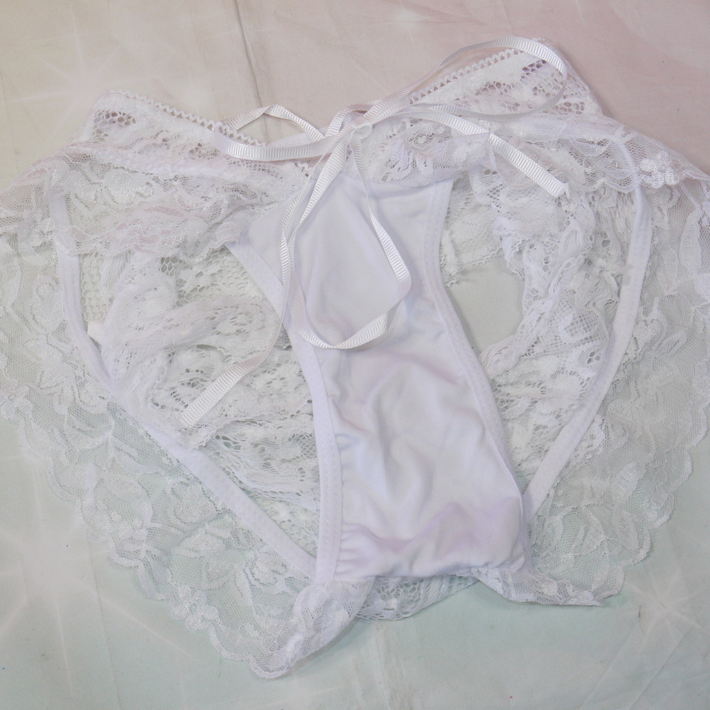 【AB/未使用?ランク】MLサイズ程度 ★ やっぱ白×贅沢フリル がっつりオープンバック パンティ