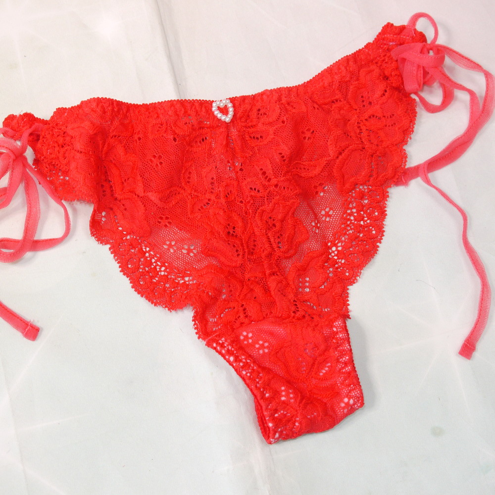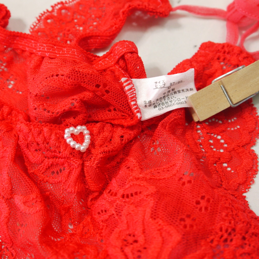 【Bランク/新古美品】サンロード:Mサイズ ★ 痴女感ムンムンの赤ランジェ パールチャーム 紐パン T