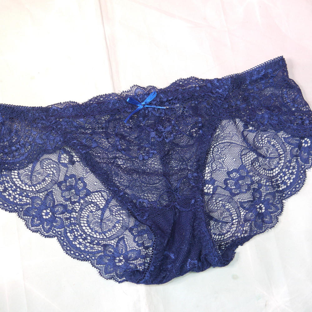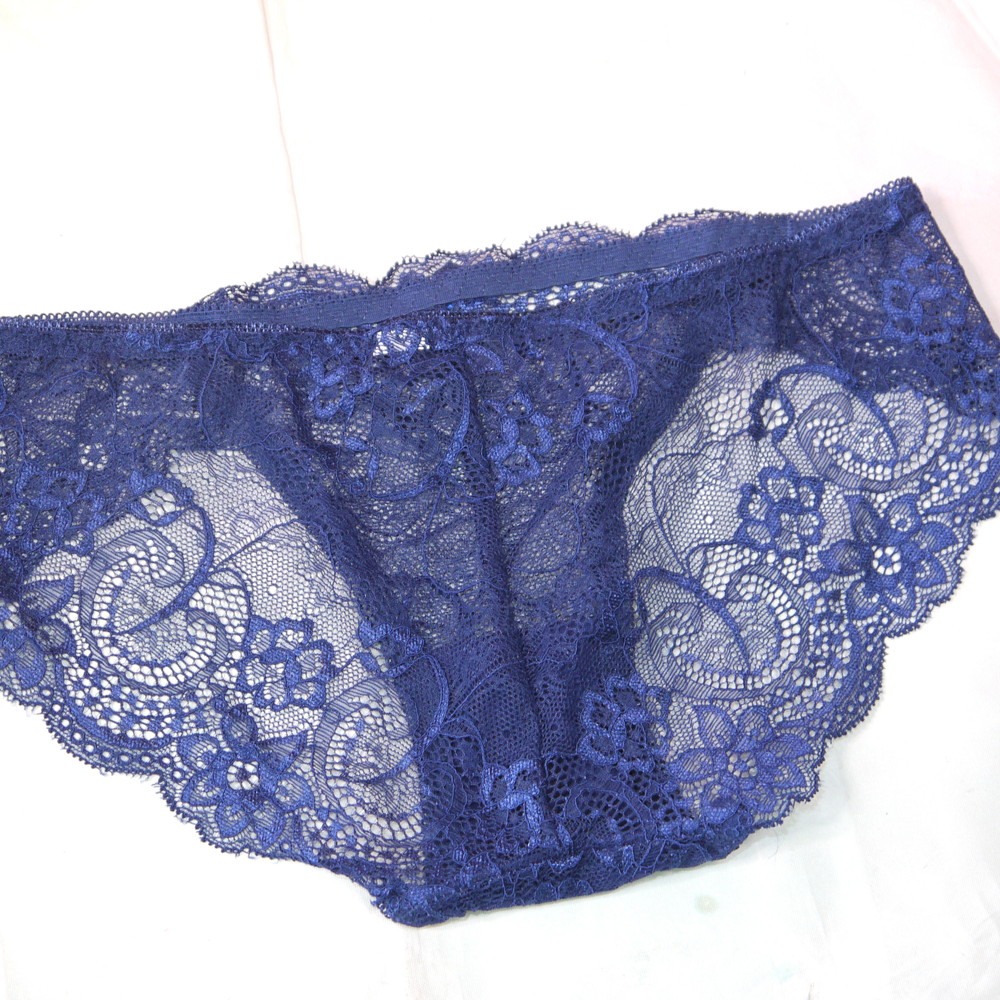 【Bランク/新古美品】MLサイズ程度 ★ ネイビー×総レース パンティ