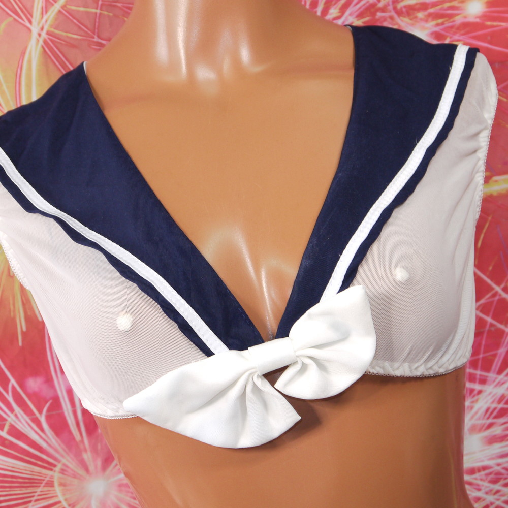 【BCランク】MLサイズ程度 ★ ネイビー×白 セーラーコス 透け胸SEXYです