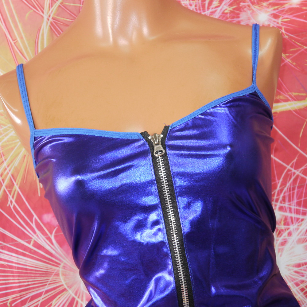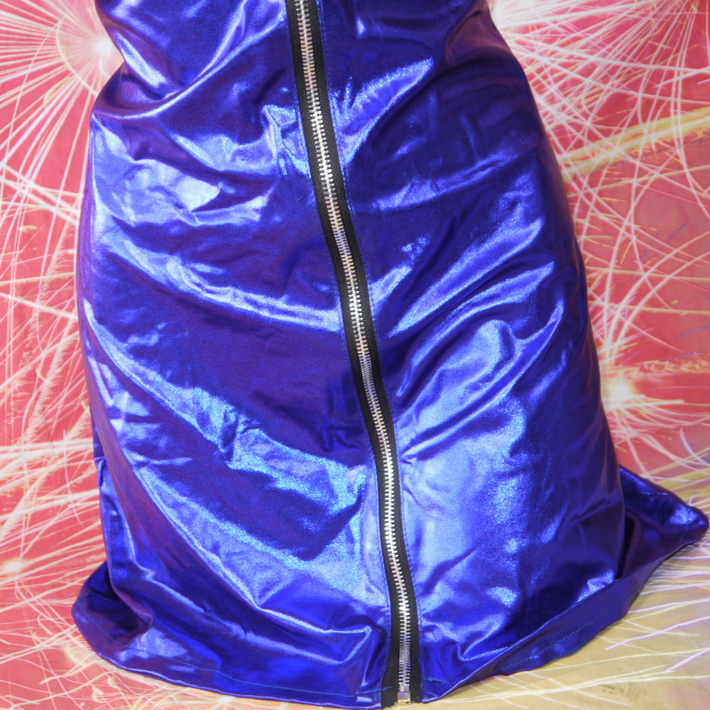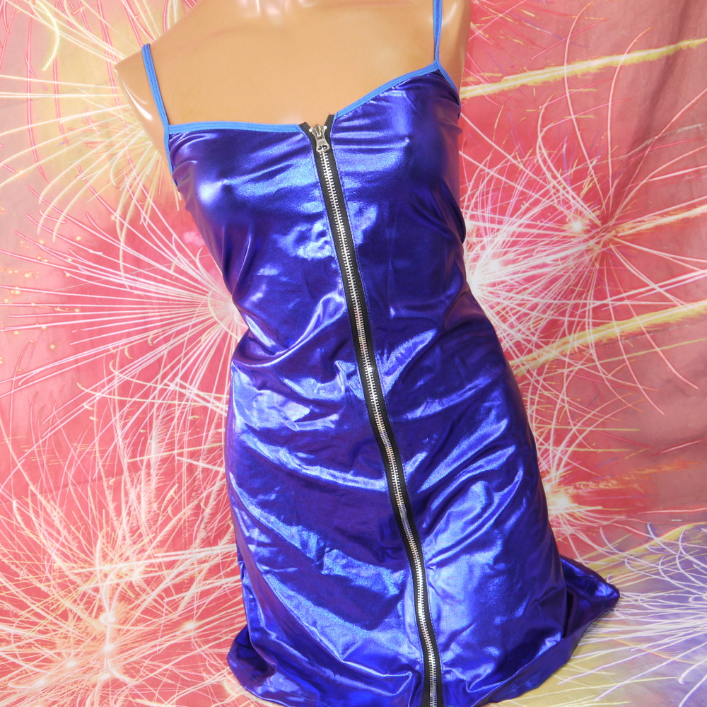 【Aランク/未使用】ML程度 丈77 ★ ギラっと輝くメタリックブルー フロントZIP ボディコンワンピ