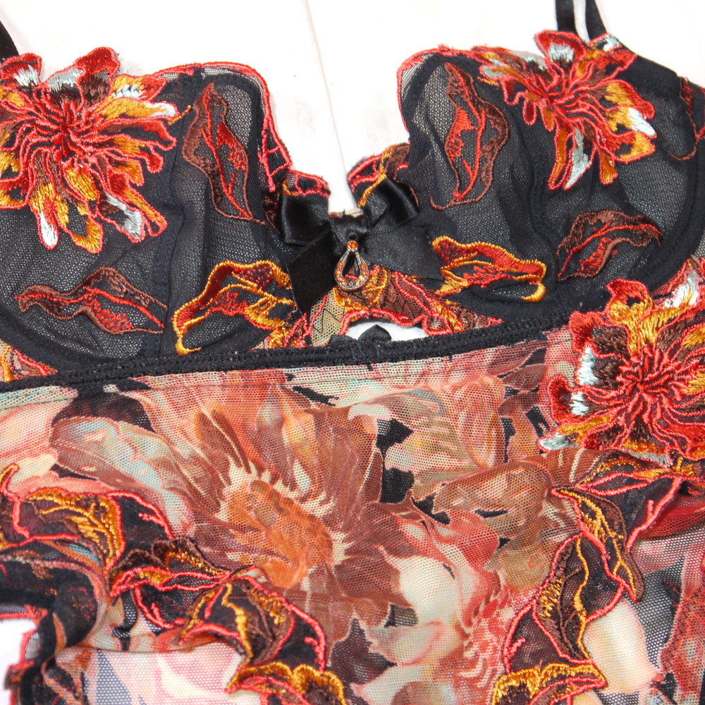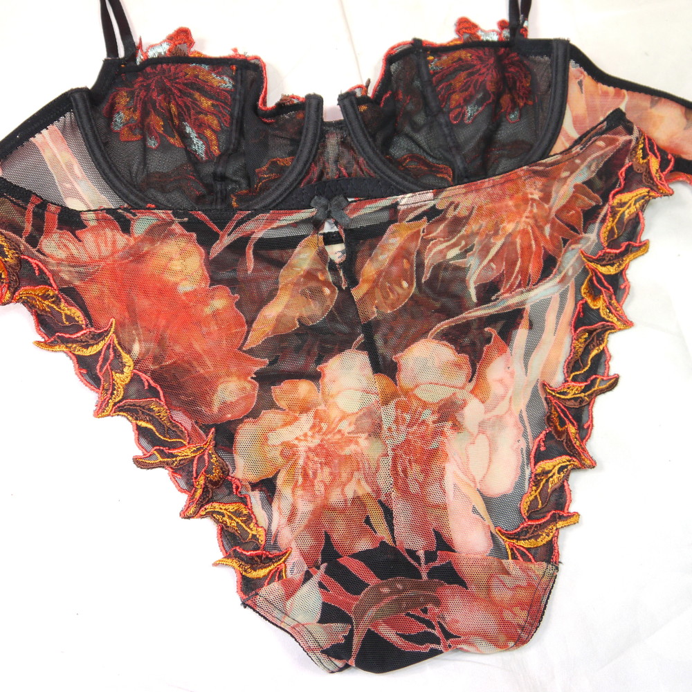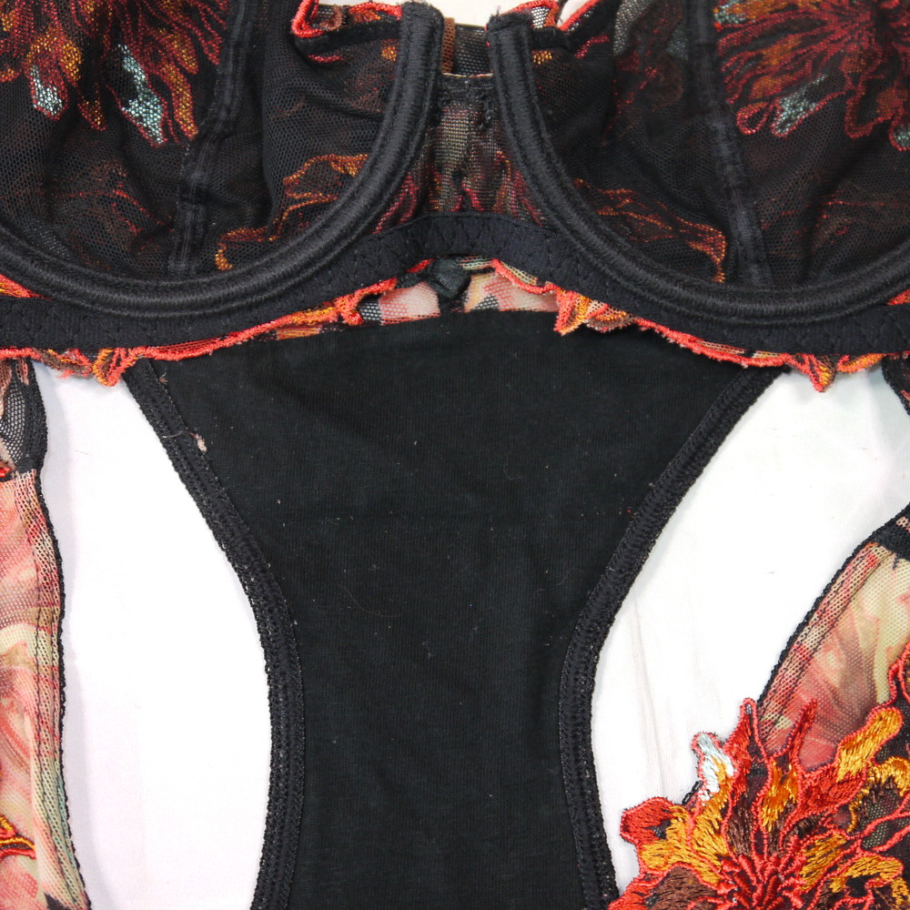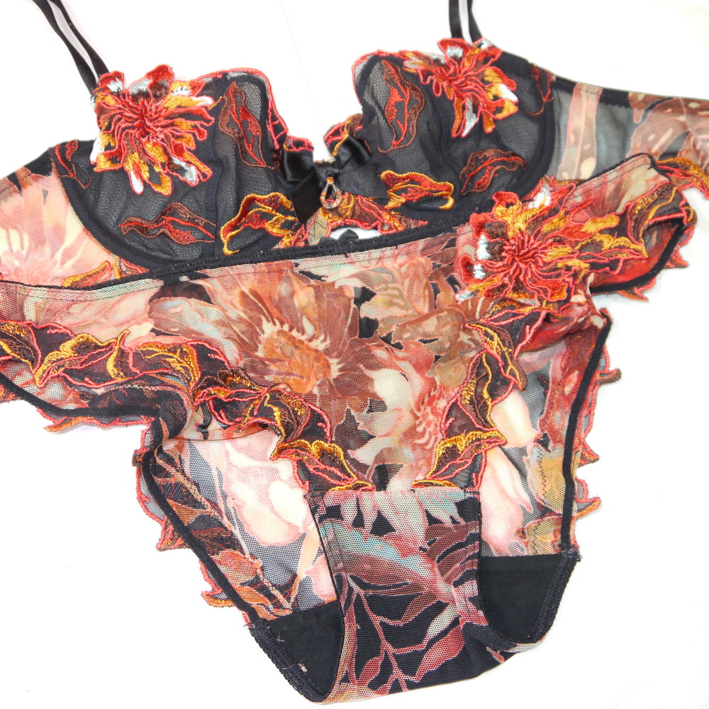 【BCランク】Aubade?:BCカップ程 MLサイズ程度 ★ ヴィンテージ感溢れるお花×刺繍 美魔女度UP インポート PBセット