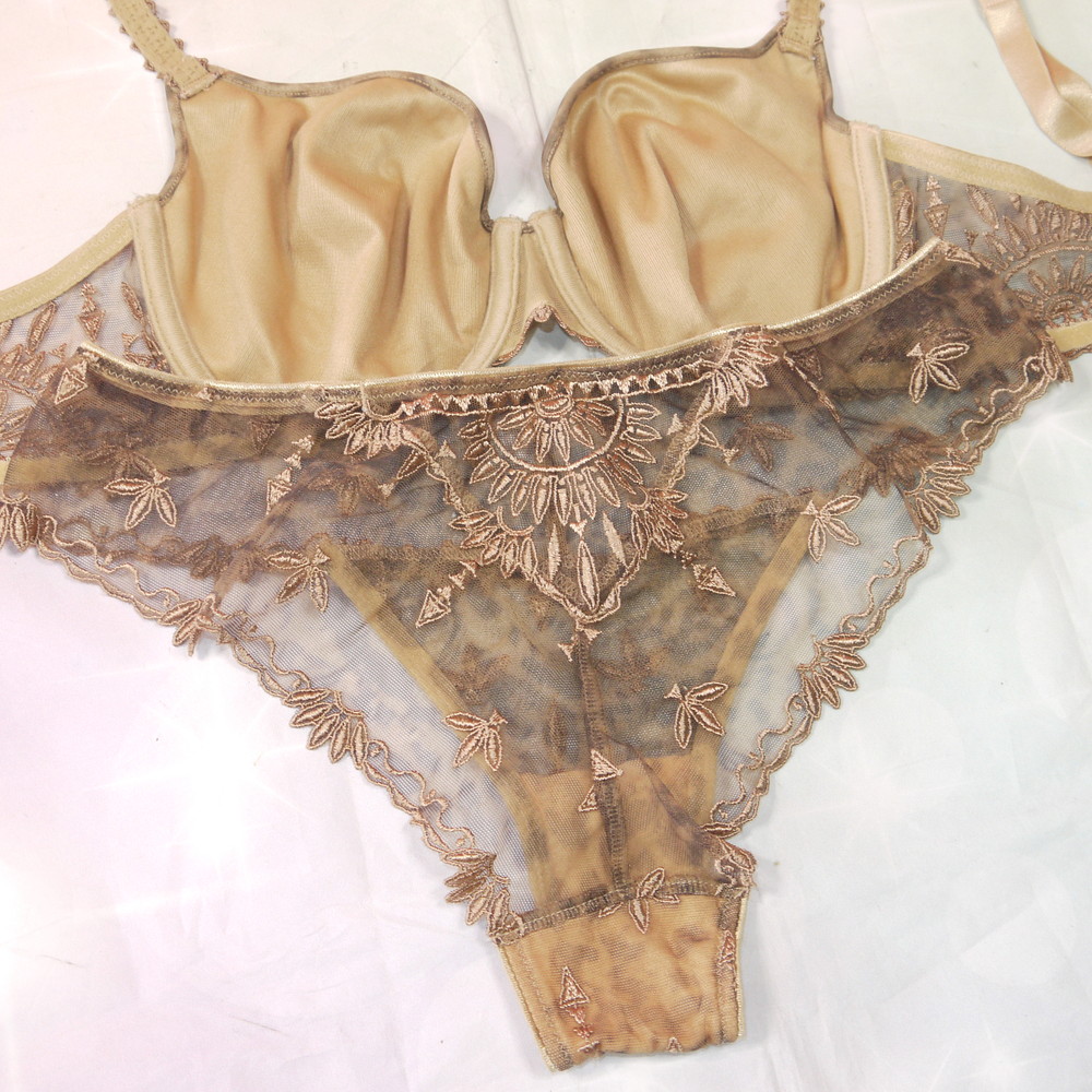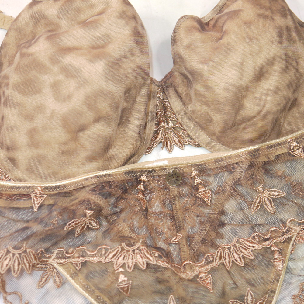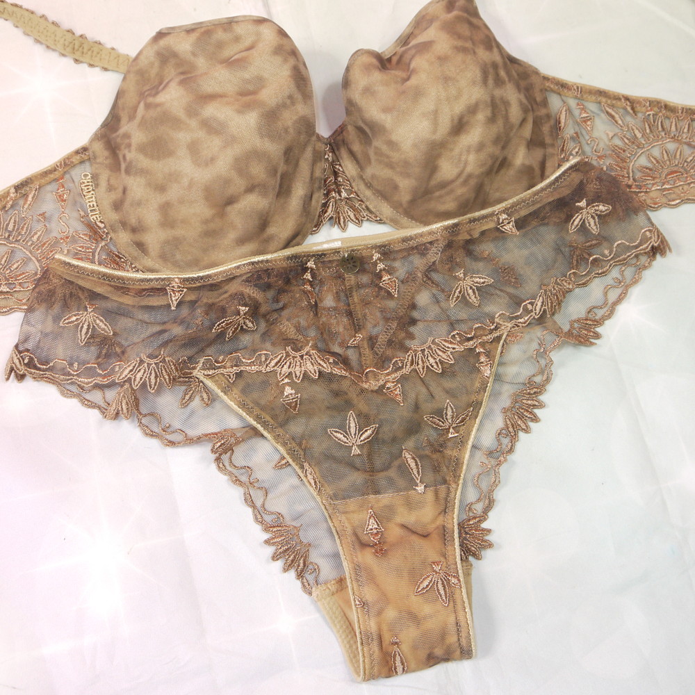 【Bランク/新古美品】Chantelle:DEカップ程 MLサイズ程度 ★ マダム・セレブ感が異常に強い豹×ベージュ ハーフT PBセット