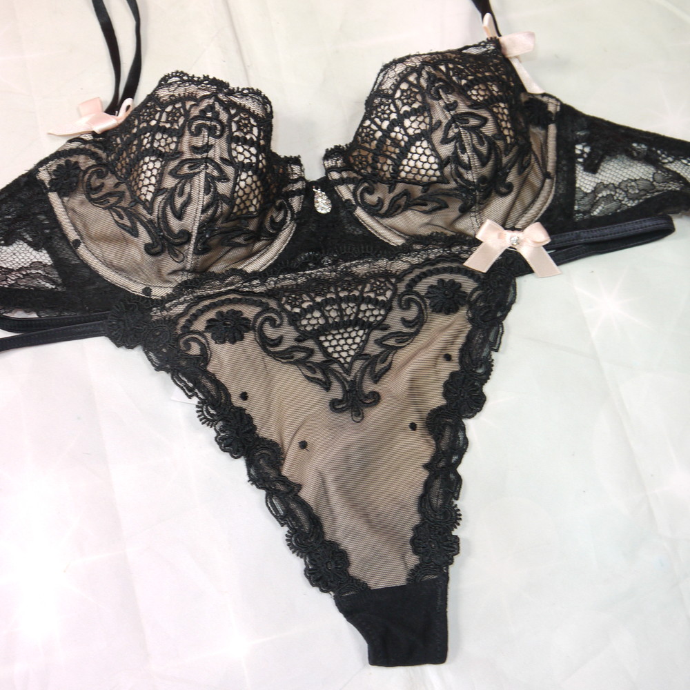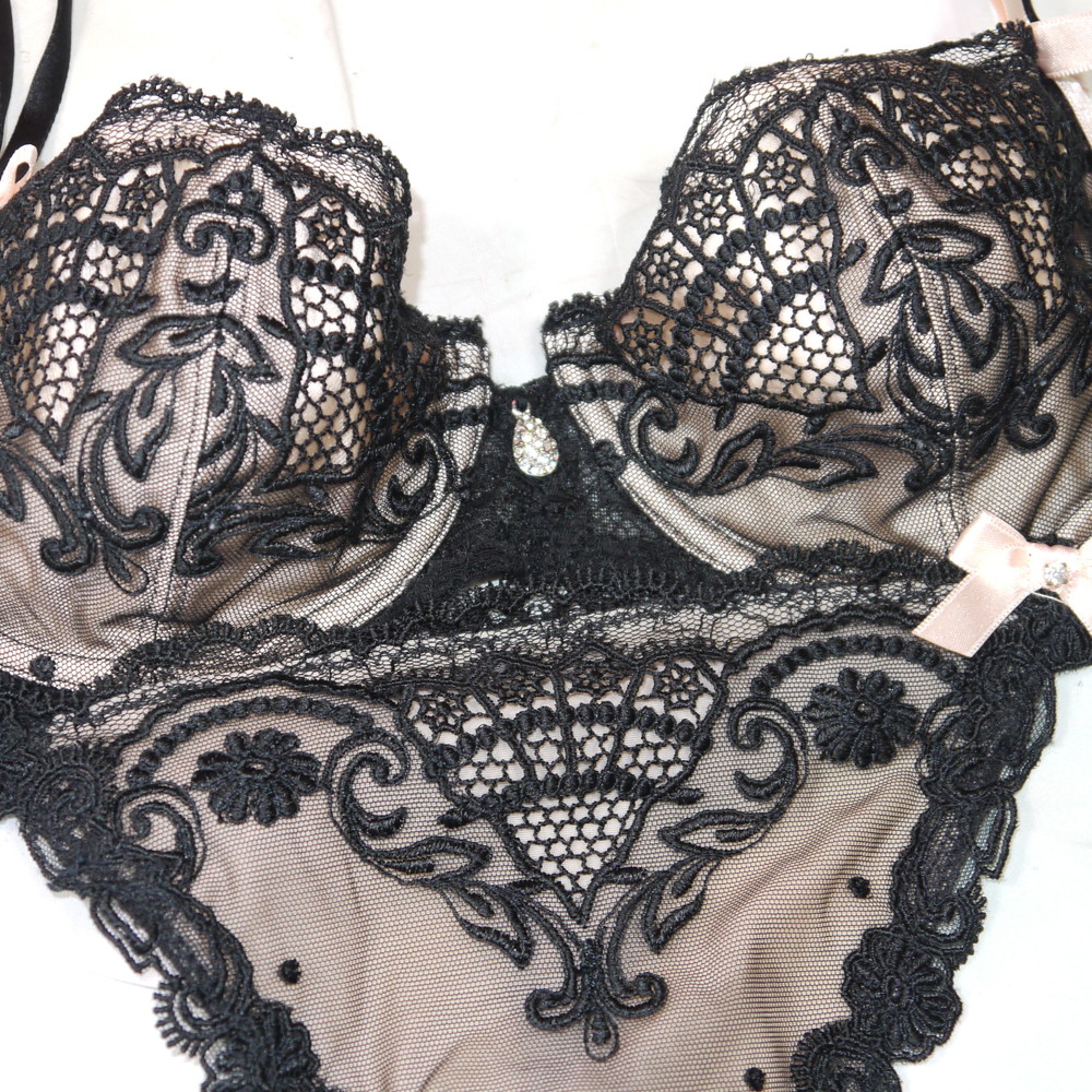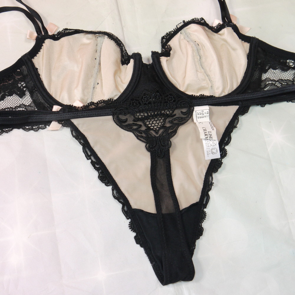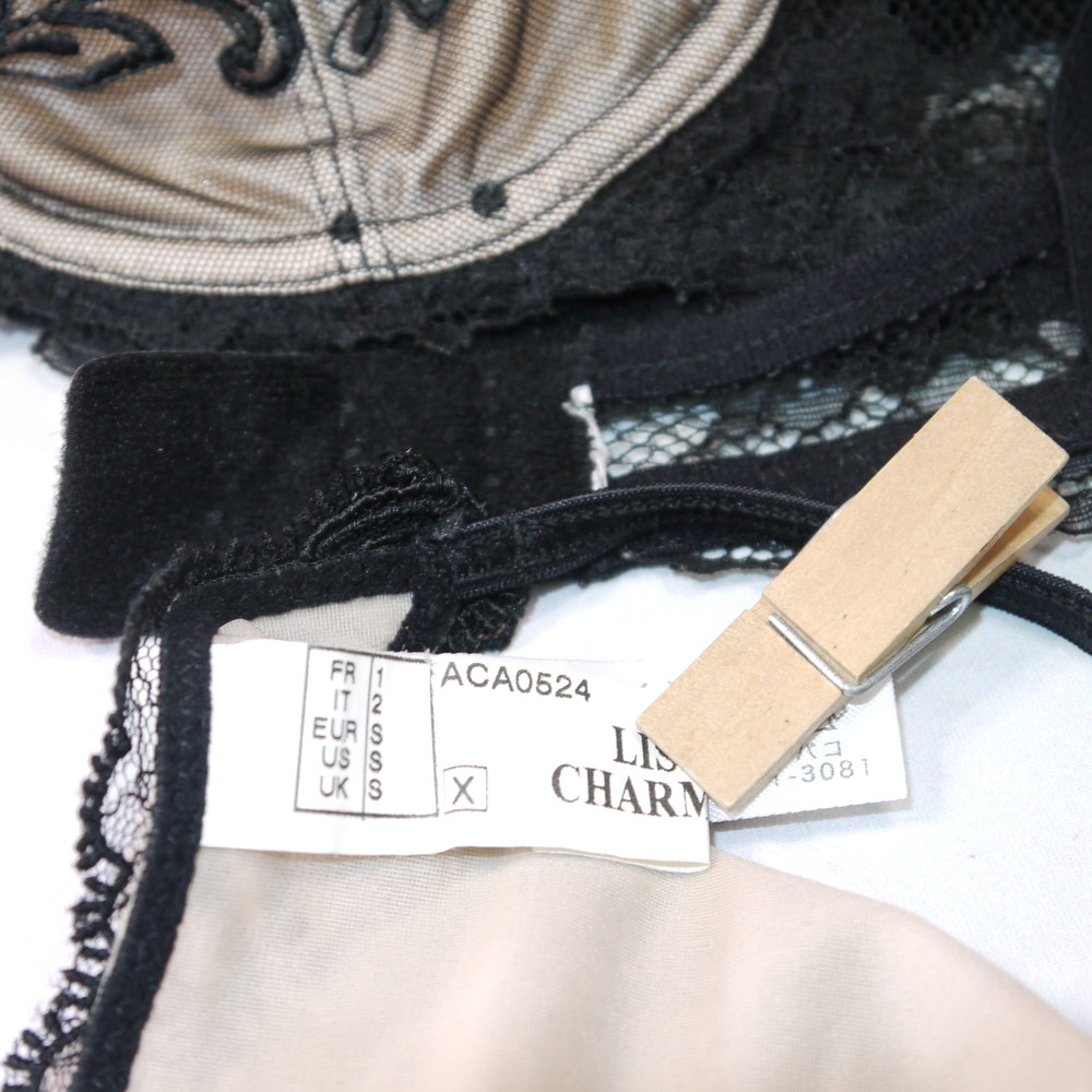 【Bランク/新古美品】LISE CHARMEL:S(Bカップ程) MLサイズ程度 ★ お嬢様感UPのライトベージュ×リーフ刺繍ランジェ T PBセット