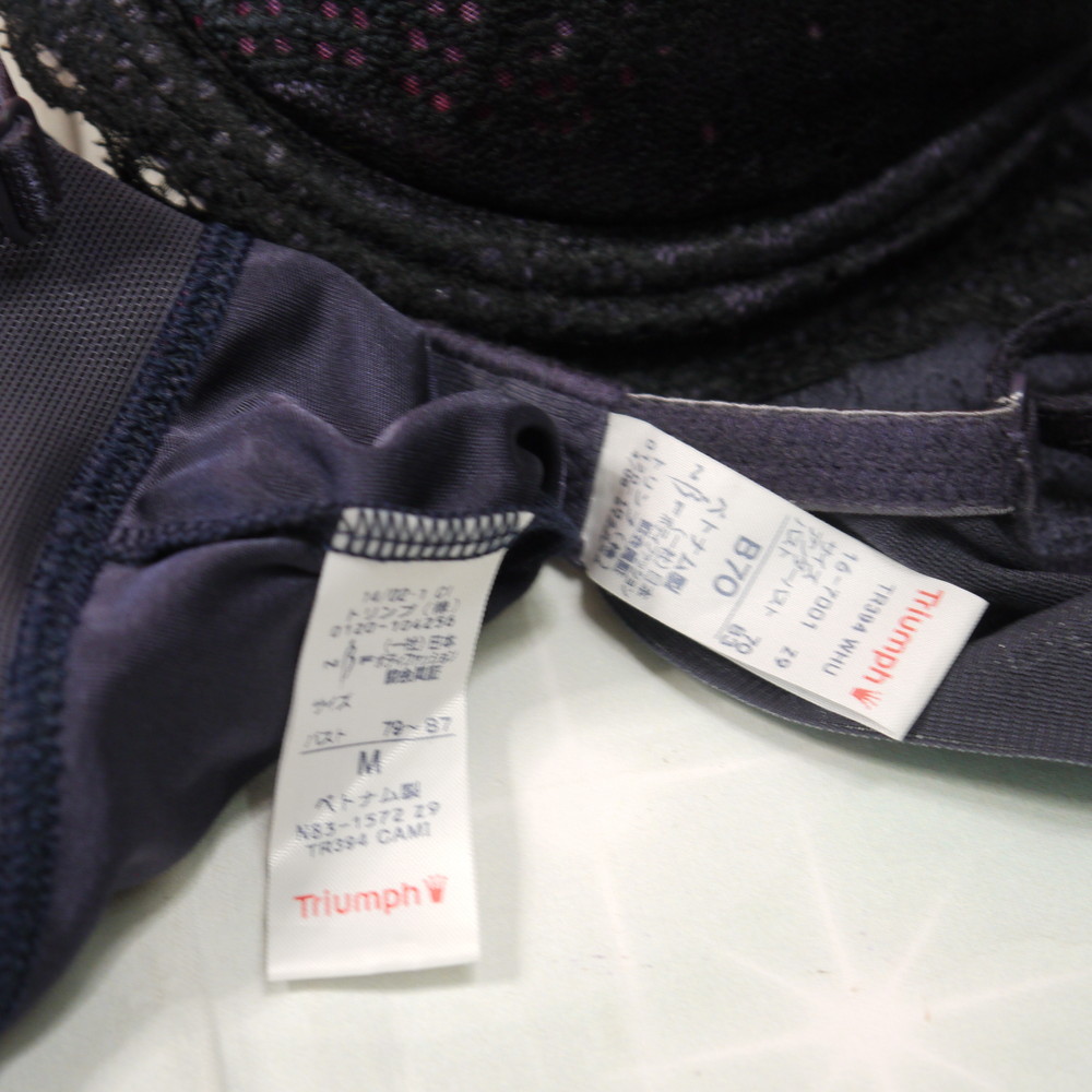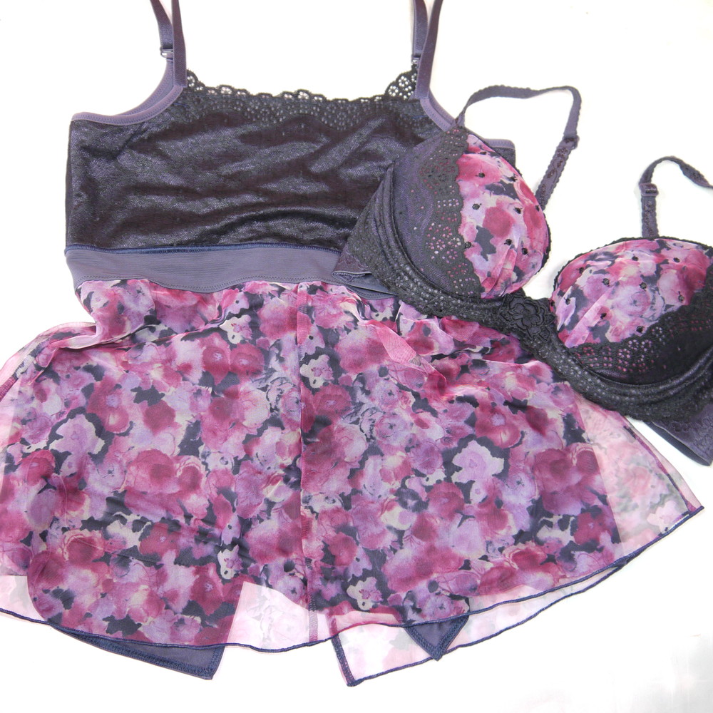 【Bランク/新古美品】トリンプ:B70*83 キャミ(M 丈55) ★ 大人ナイトウエア 紫×パンジー? ブラ・キャミセット