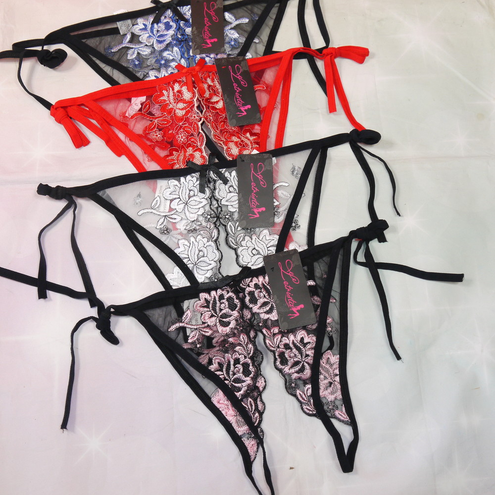 【Sランク/タグ付】サイズ ★ 妖艶で大人な穴あきランジェ 刺繍系&紐パン 4枚セット