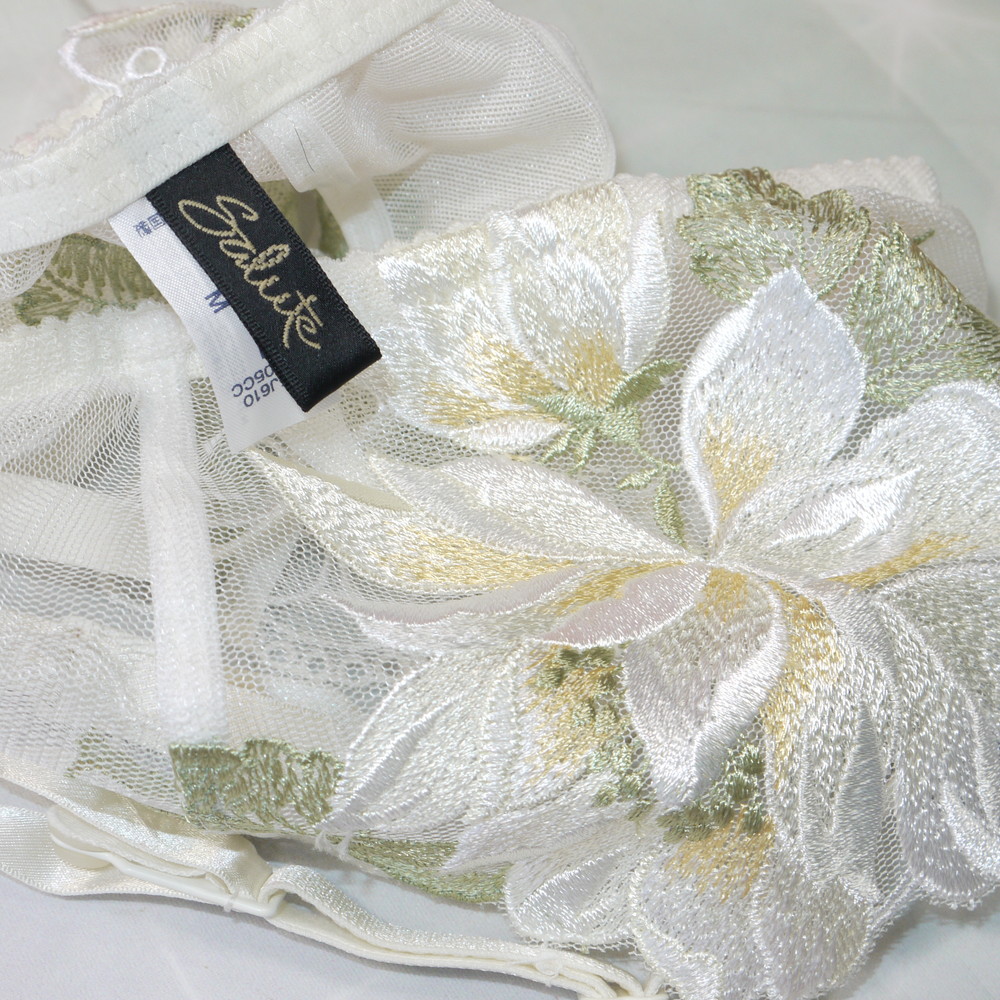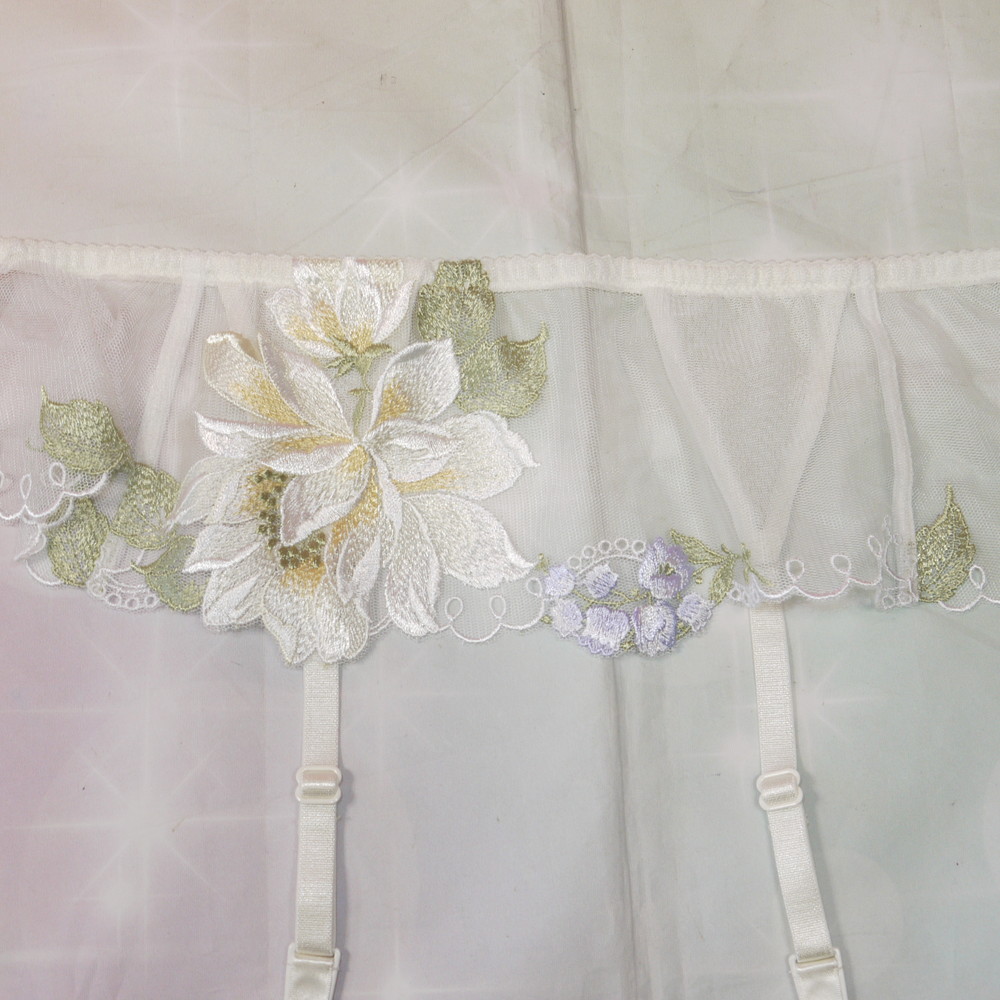 【Bランク/新古美品】サルート 10G:Mサイズ ★ 初夏のガーデンパーティー!大輪ダリアが咲き誇る オフホワ ガーターベルト