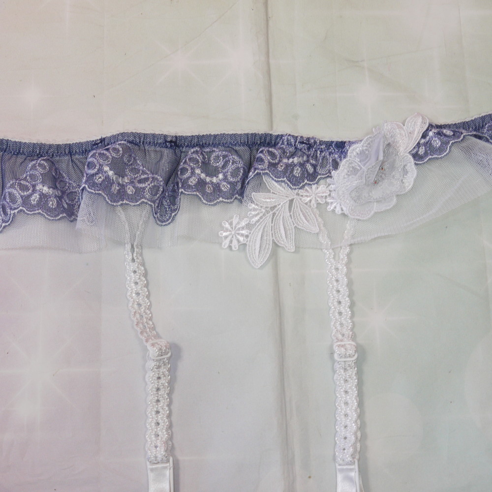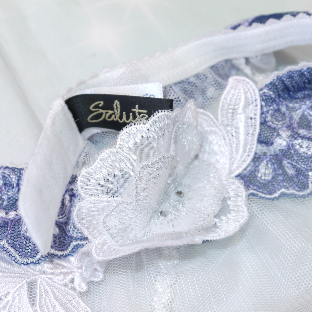 【Bランク/新古美品】サルート 44G:Mサイズ ★ 驚!お姉様度がグッと上がる白リーフ ブルーフリル ガーターベルト