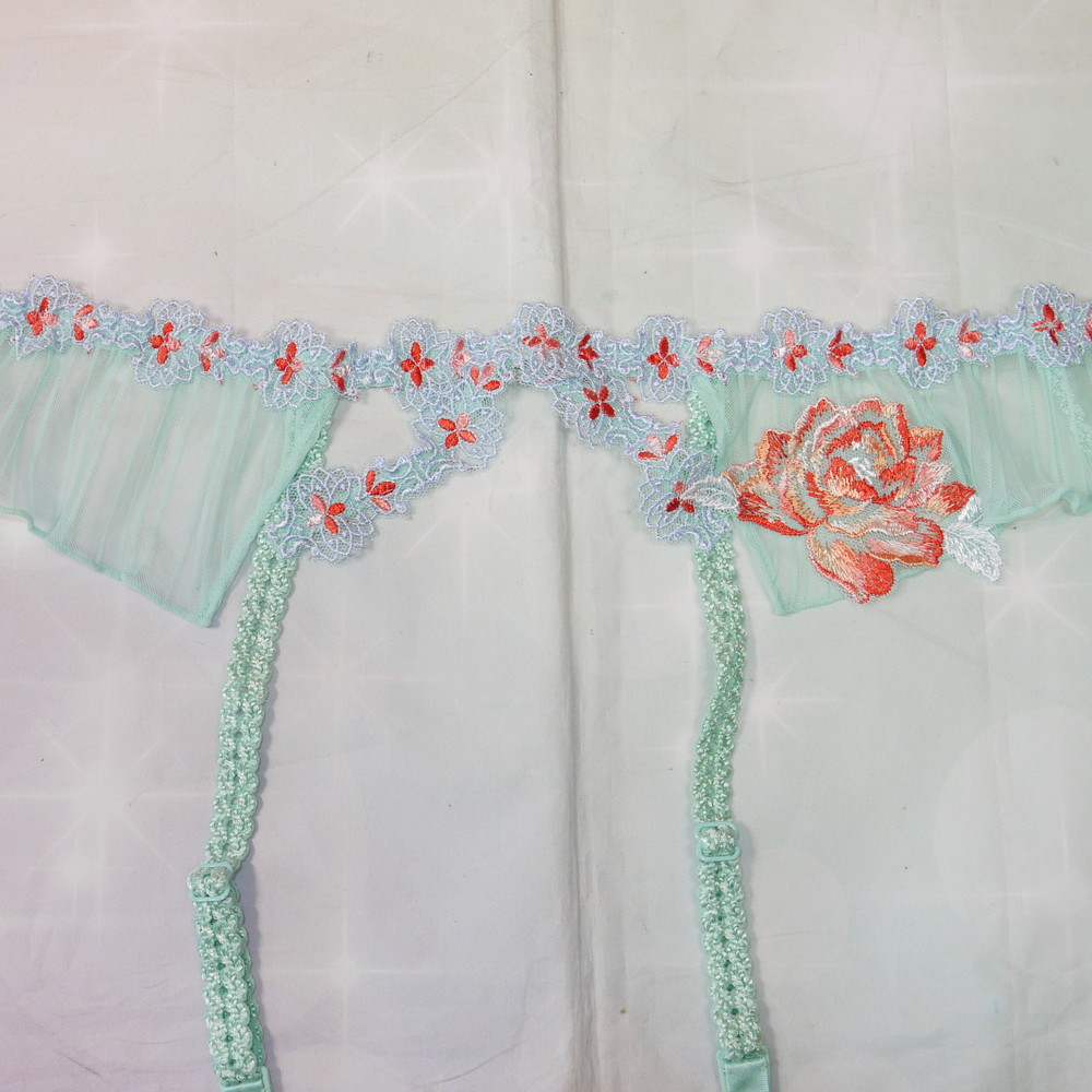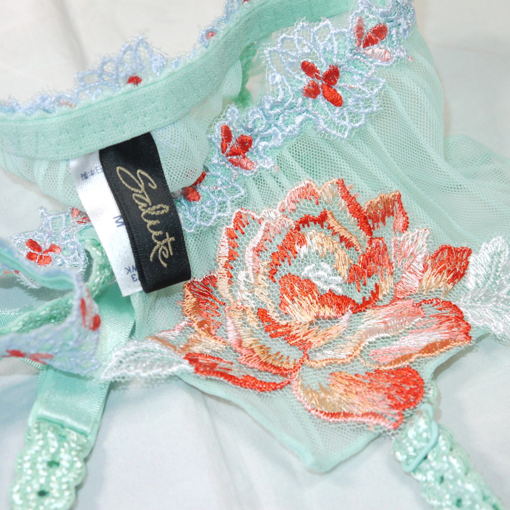 【Bランク/新古美品】サルート 73G:Mサイズ ★ アンバールーム!琥珀の間 ミント プリーツフリル バラ ガーターベルト