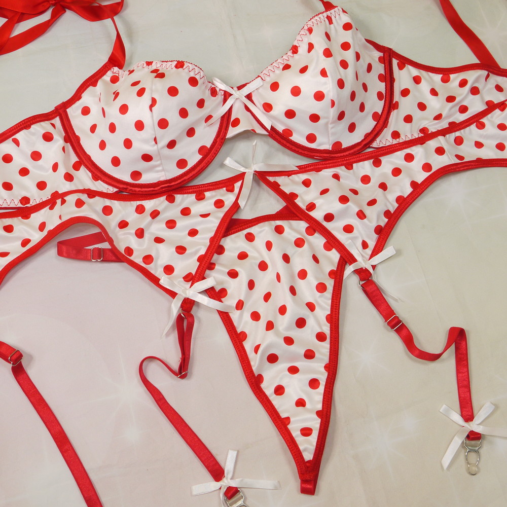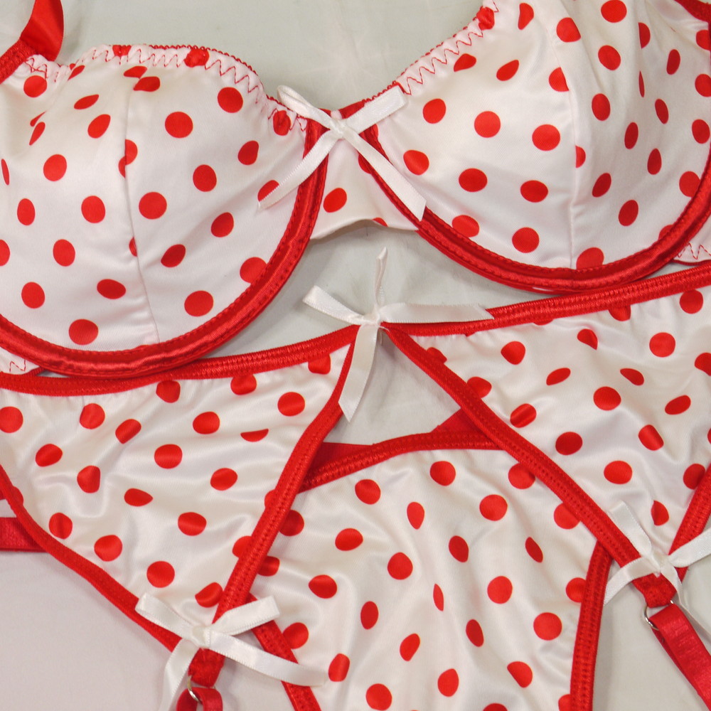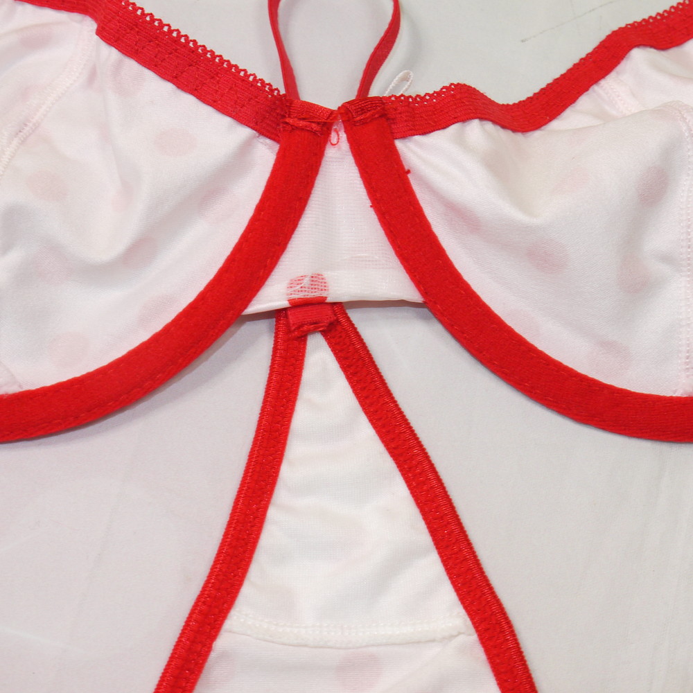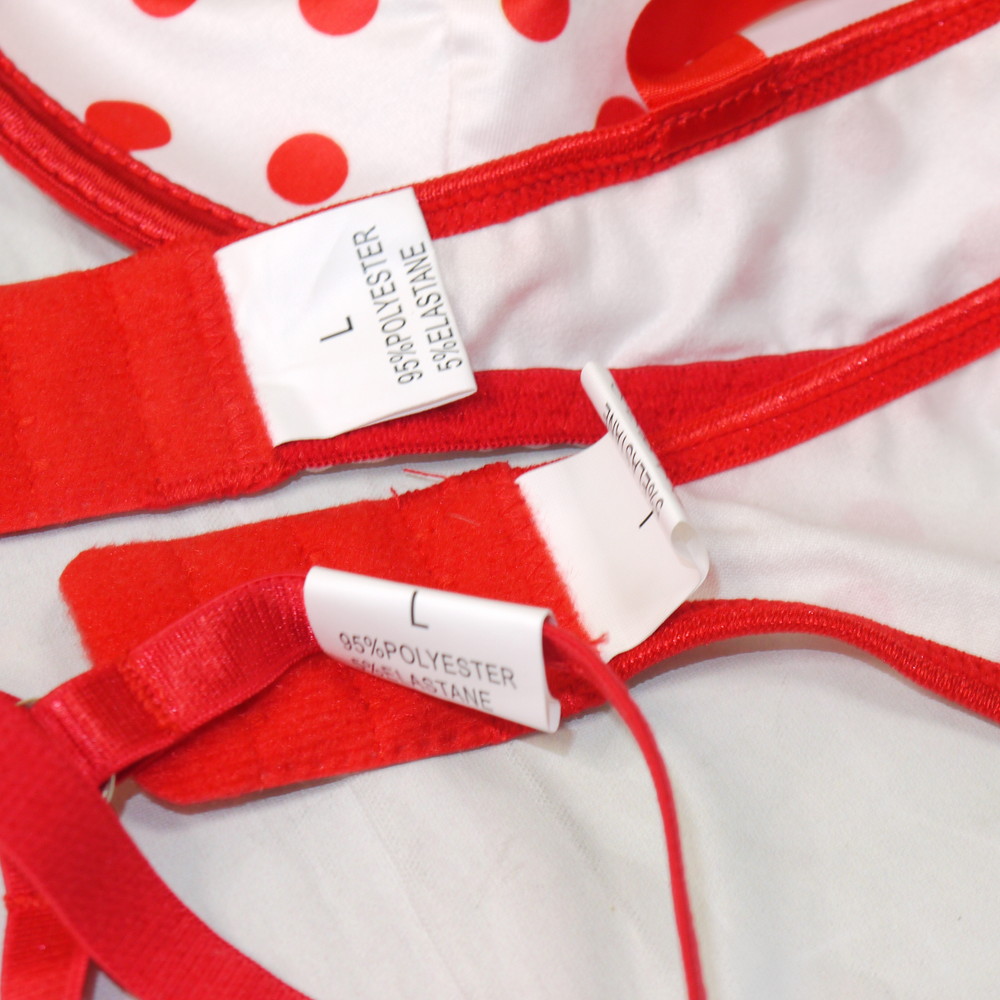 【Bランク/新古美品】L(EFカップ程) ★ ロリっと可愛い白×赤ドット ガーターセットアップ