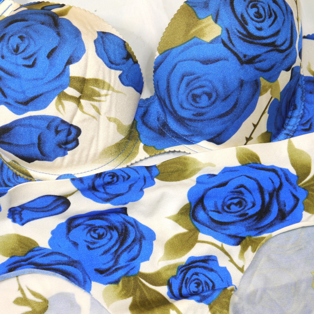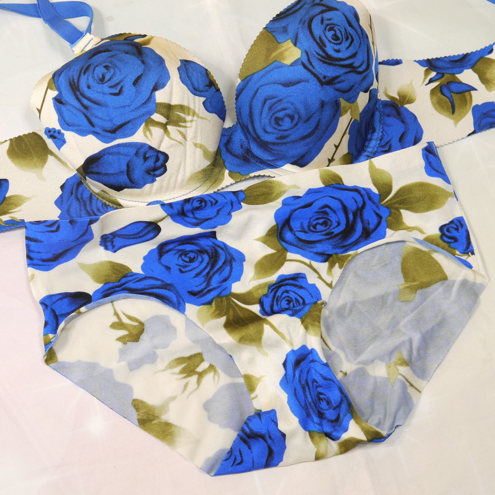 【BCランク/K43】CDカップ程 MLサイズ程度 ★ アイボリー×青薔薇 シームレス お姉様・キャバ系 PBセット