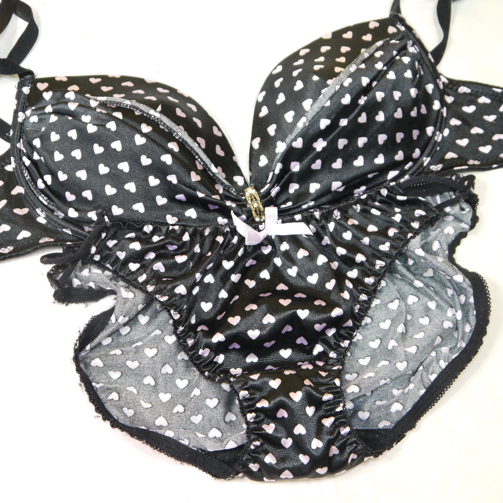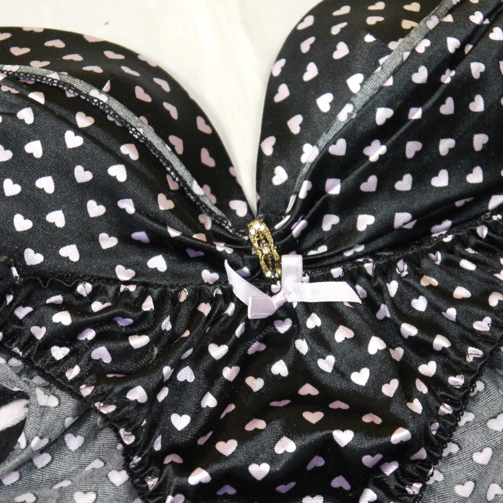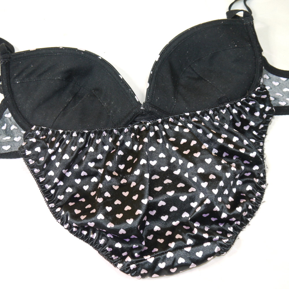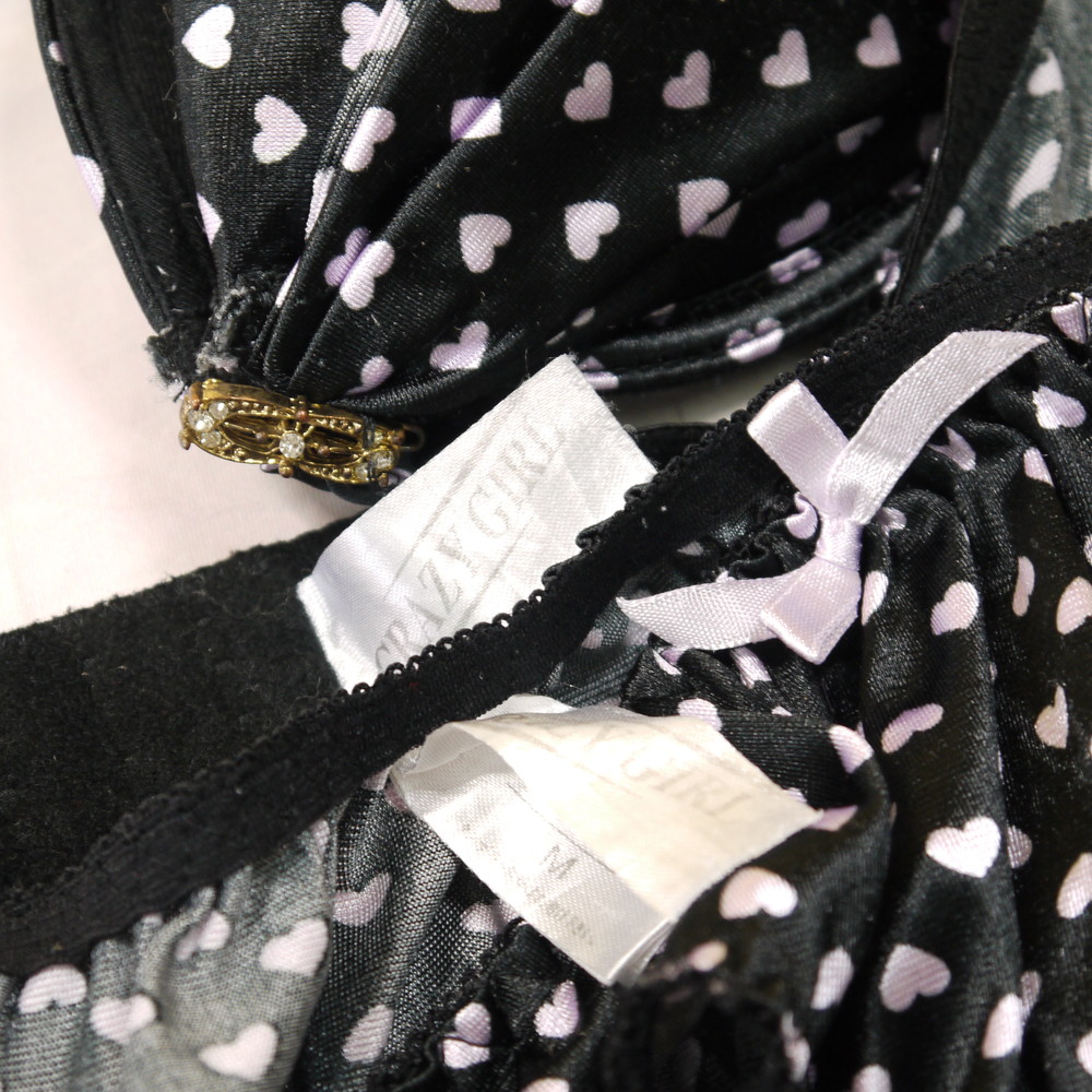 【BCランク/BC43ー】CRAZY GIRL:C75*90 Mサイズ ★ ティーンズGAL系の可愛いハート柄 黒サテン 激レア PBセット
