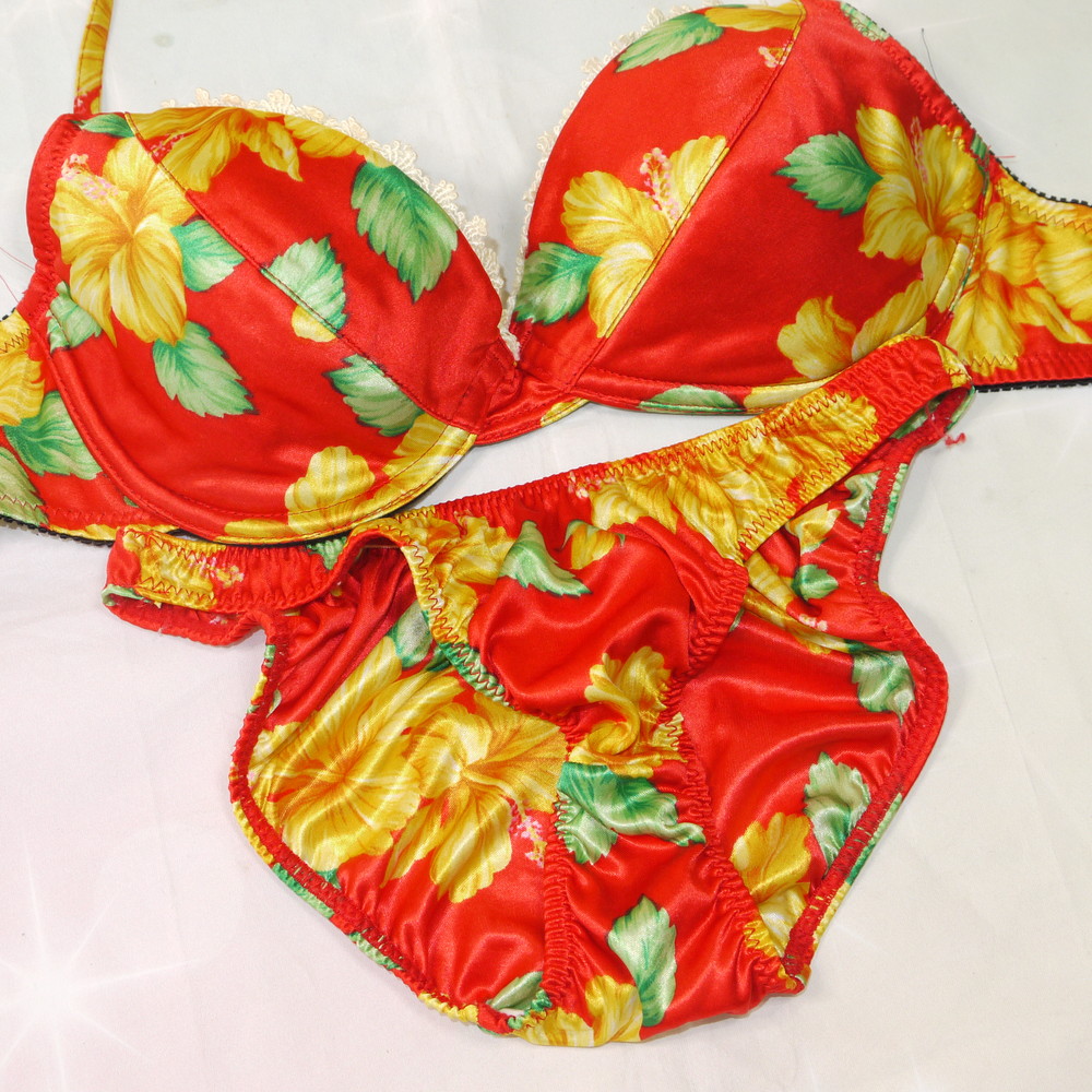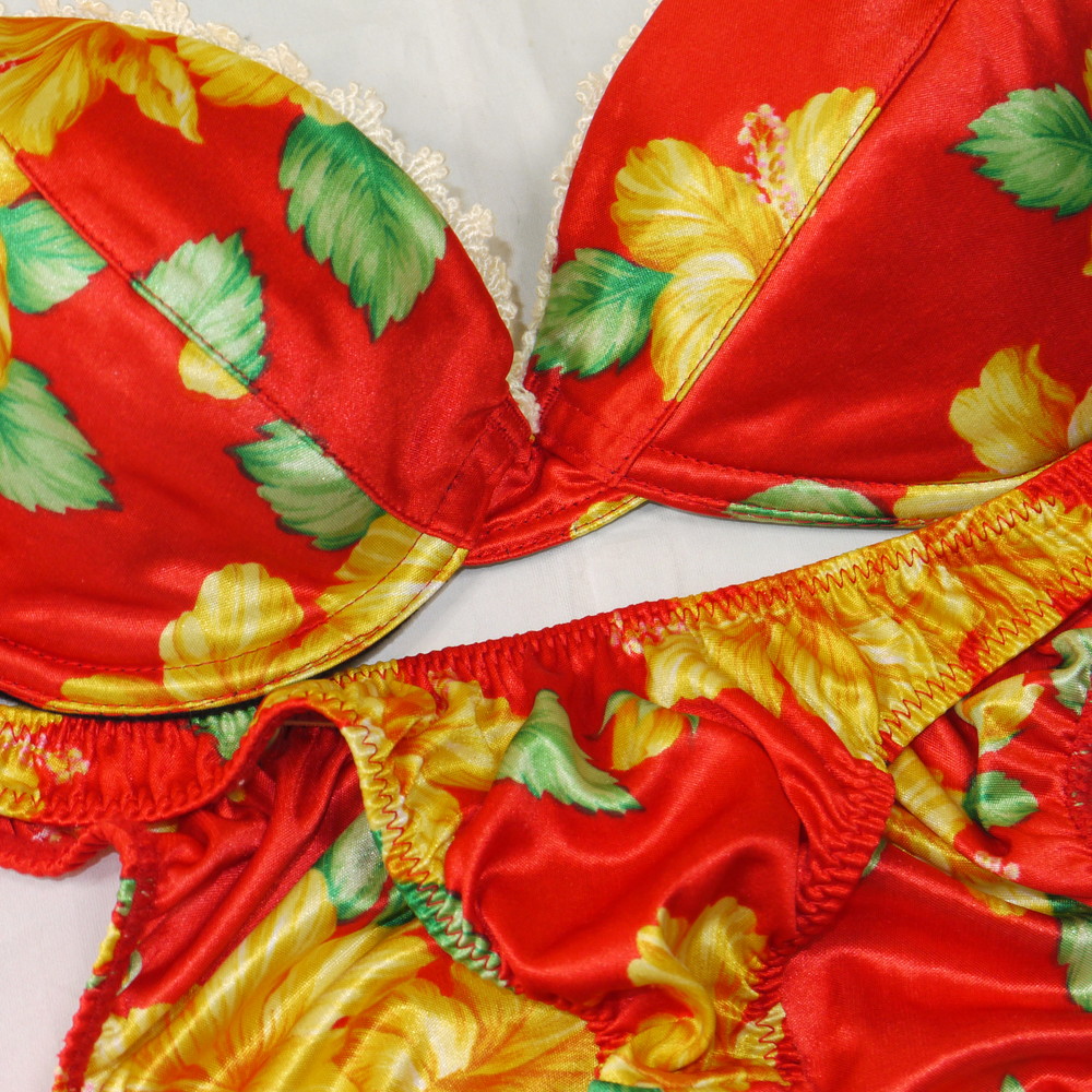 【CDランク/K43+】ターキー:C75 Mサイズ ★ つるつるサテン生地×赤 アロハ ギャル全盛期の下着 PBセット
