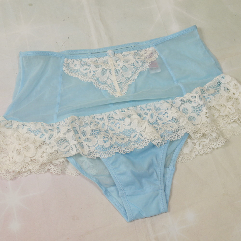 【Bランク/新古美品】ピーチジョン:S(伸縮抜群) ★ PJ!初期ピンクタグ お姉ギャル・ぎゃるママ系 ブルー フリルパンツ