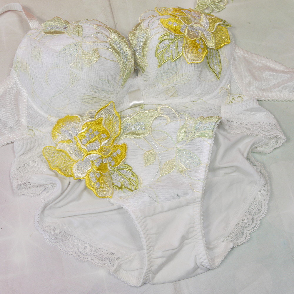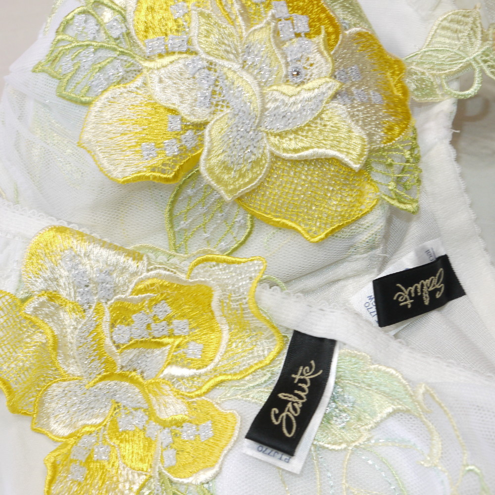 【BCランク/43ー】サルート 70G:C70*85 Mサイズ ★ 汐風と戯れて!清楚感白×黄薔薇アップリケ PBセット