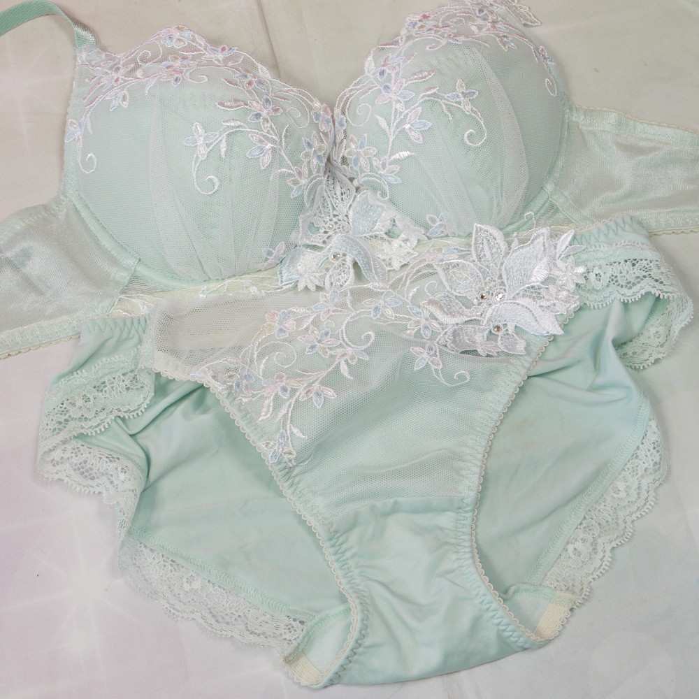 【BCランク/K43ー】サルート 55G:C70*85 Mサイズ ★ 清楚感溢れるライトブルー×花リーフアップリケ KIRAスワロフ 純粋系PBセット