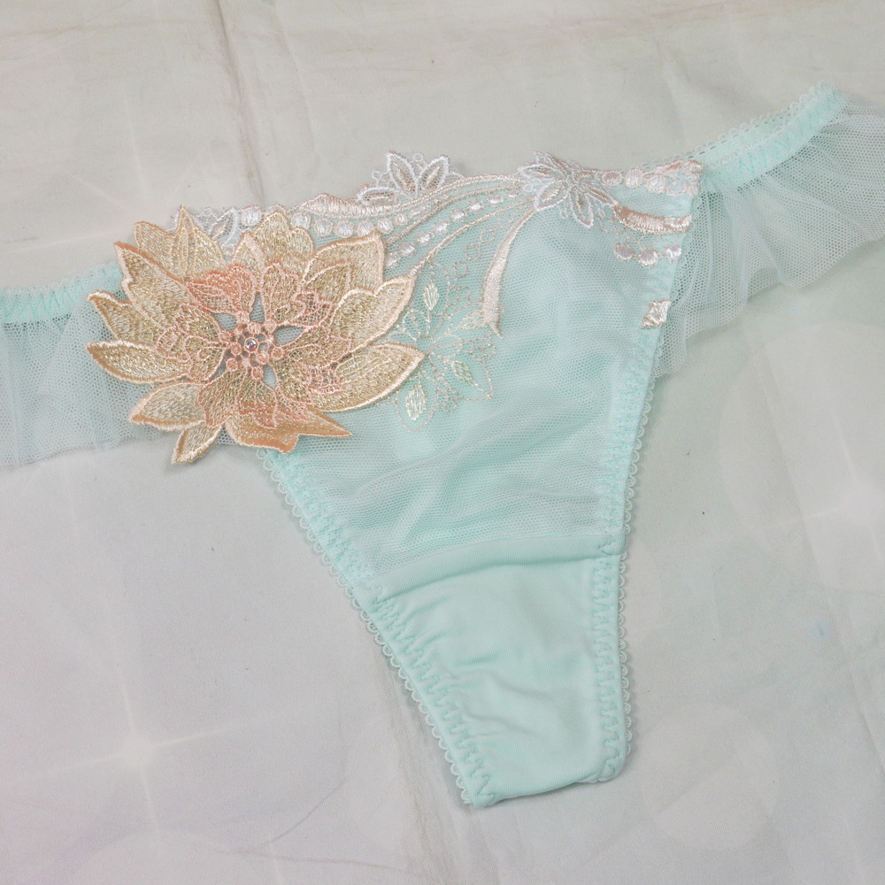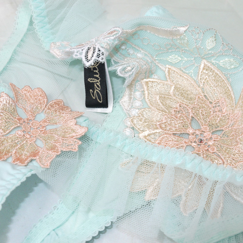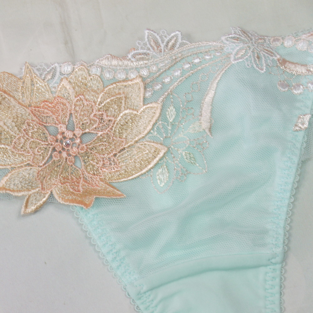 【Bランク/新古美品】サルート 80G:Mサイズ ★ 風薫!清楚感溢れるミントカラー 金花アップリケ お嬢様系ランジェ T