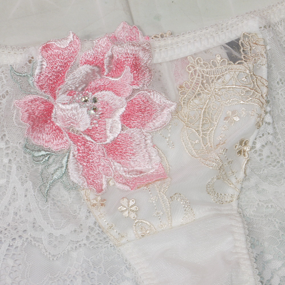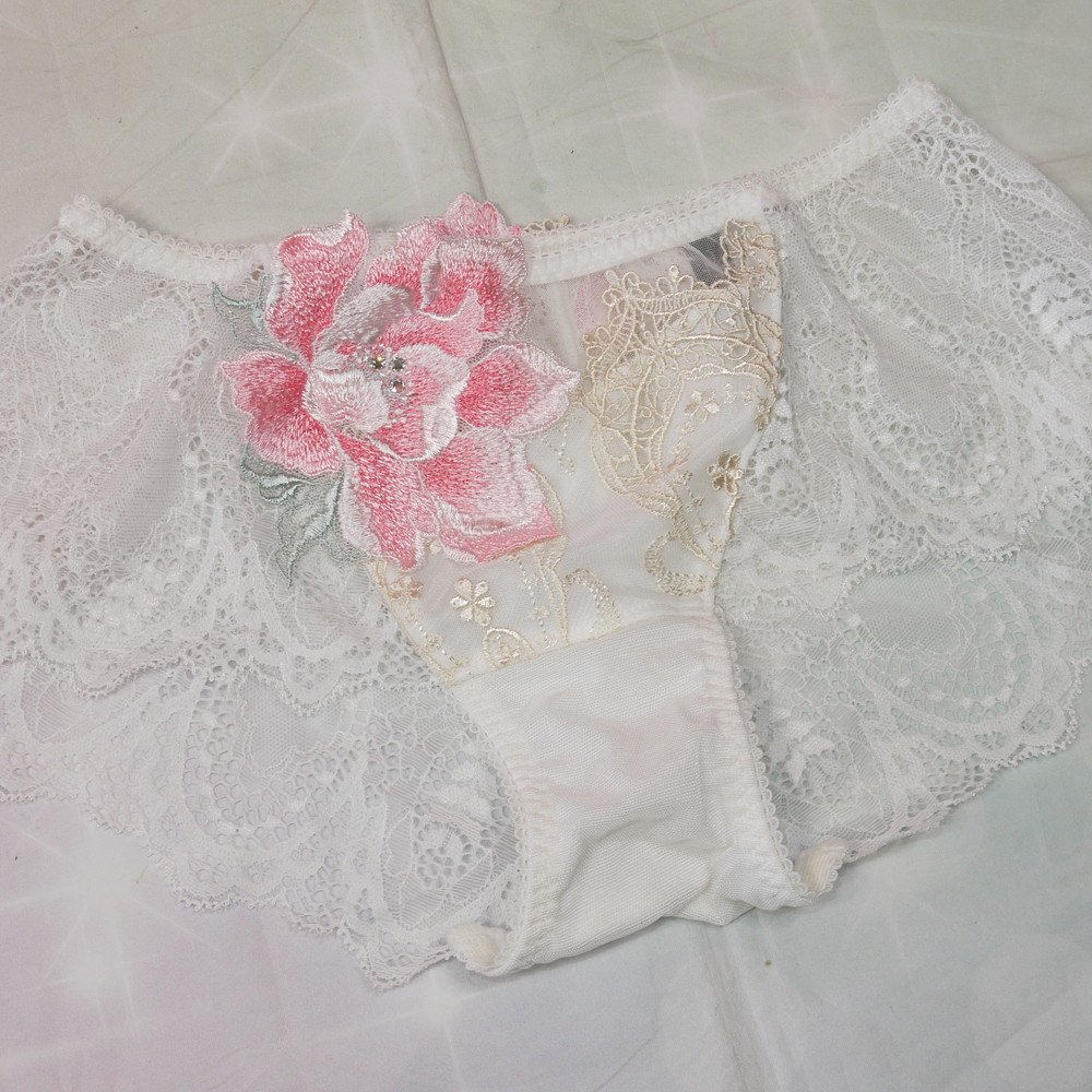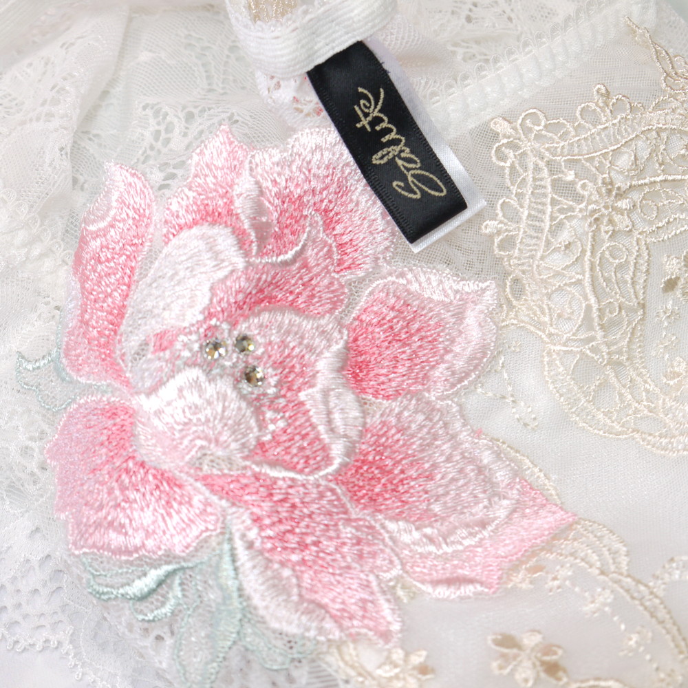 【BCランク】サルート 68G:Mサイズ ★ 夕陽の余韻!店舗限定 清楚白×金リーフ 大輪花アップリケにスワロフ ショーツ