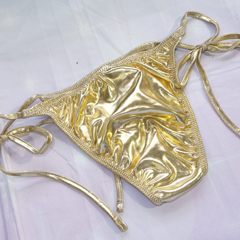 【ABランク/未使用?】La-pomme:F(M-LLサイズ程度) ★ ギラっと輝くメタリック 金 ゴールド ダンサーGAL系 紐パン
