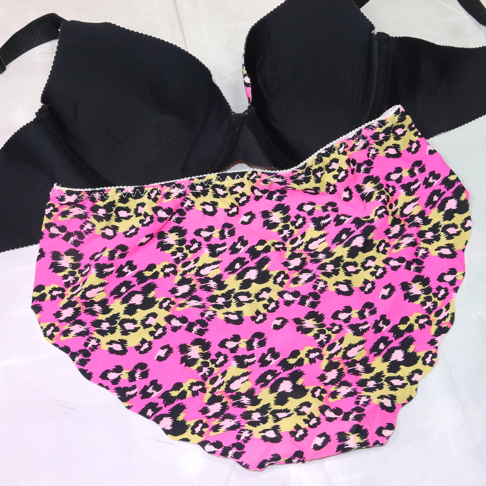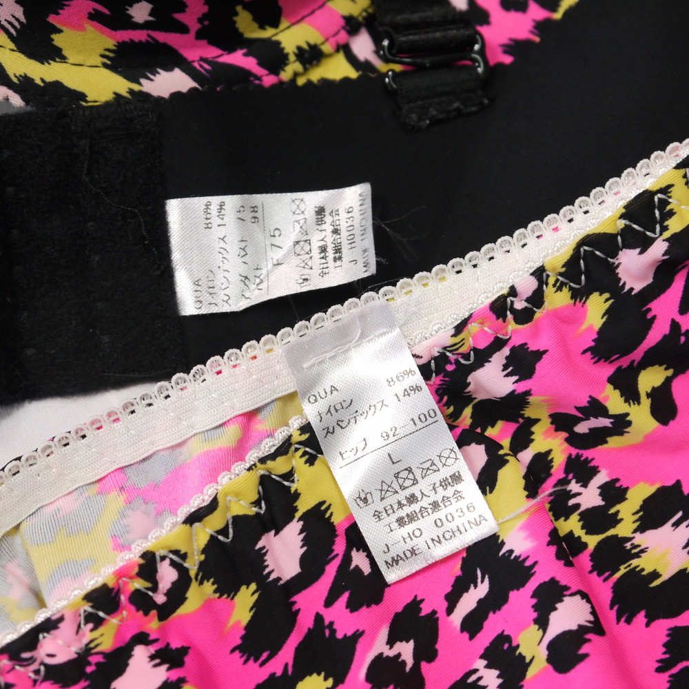 【BCランク/K43ー】全日本婦人子供服協会:F75*98 Lサイズ ★ ネオン×ピンク 爆乳デカブラ 豹柄 ビッチGAL系の派手下着 PBセット