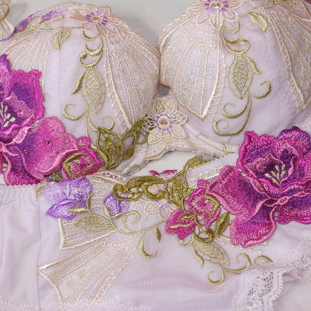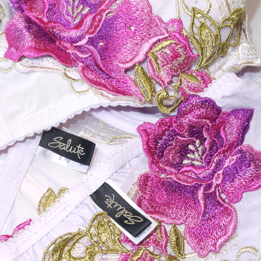 【BCランク/K43ー】サルート 84G:E70*90 Lサイズ ★ オーラ!高級感溢れる淡紫 金糸に紫薔薇 スワロフ 巨乳デカブラ PBセット