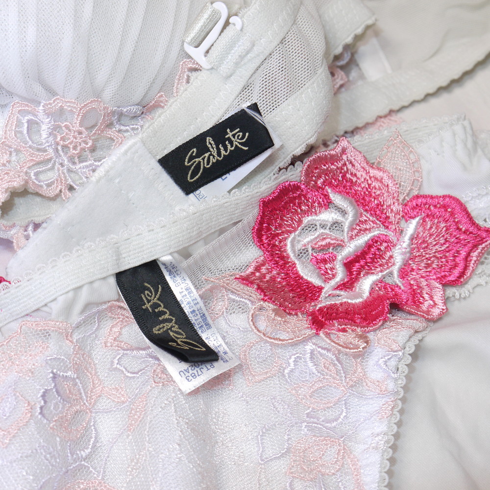 【Cランク/K43】サルート 83G:E70*90 Lサイズ ★ レッドカーペット!白×薔薇アップリケ 巨乳・お姉様系 PBセット