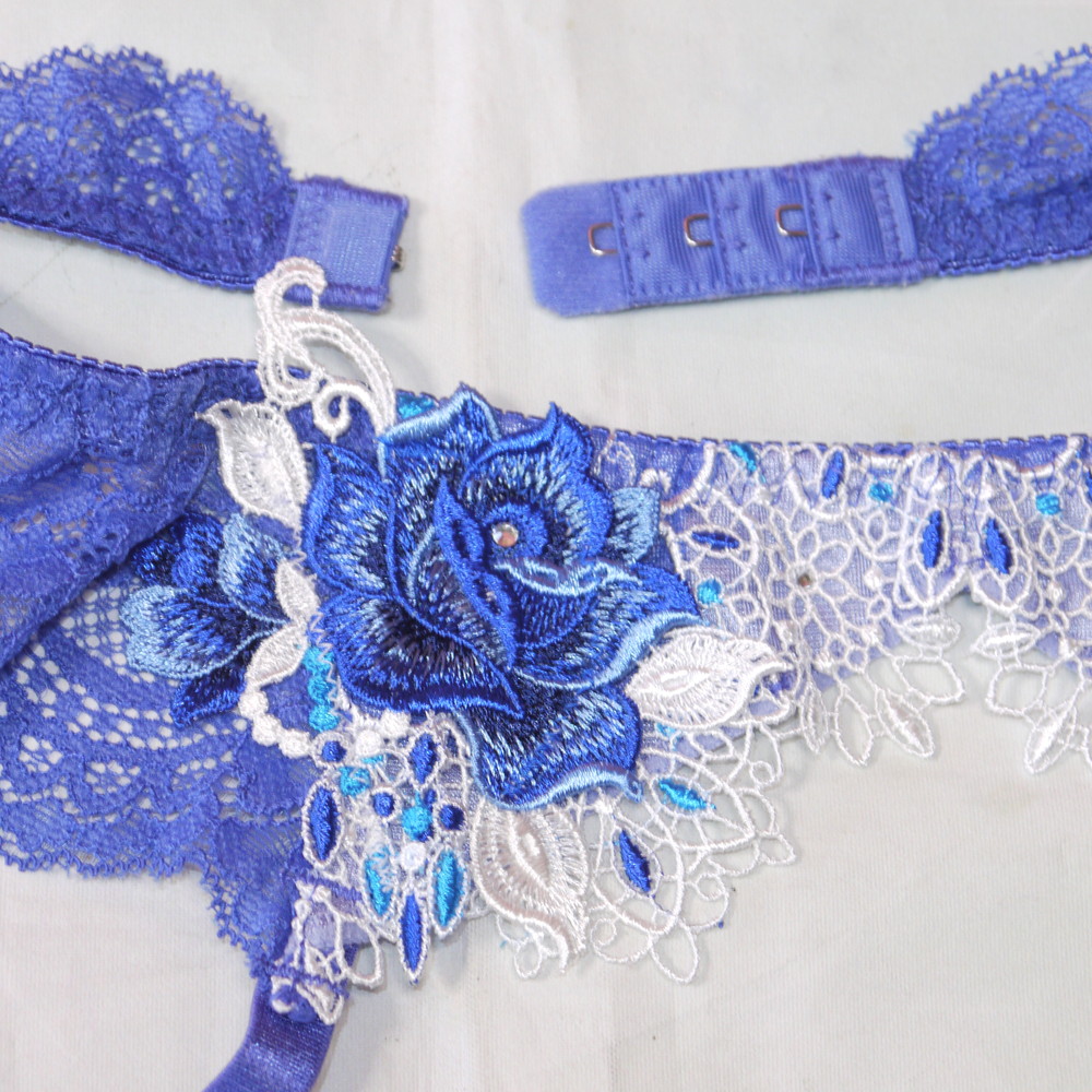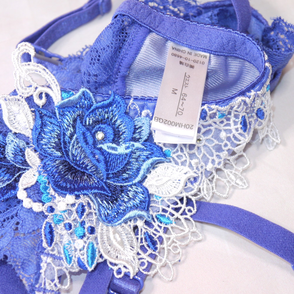 【ABランク/未使用?】HIMICO:Mサイズ ★ 白鳩コラボ!ガーデン!青紫 クラシック系ガーターベルト スワロフ?
