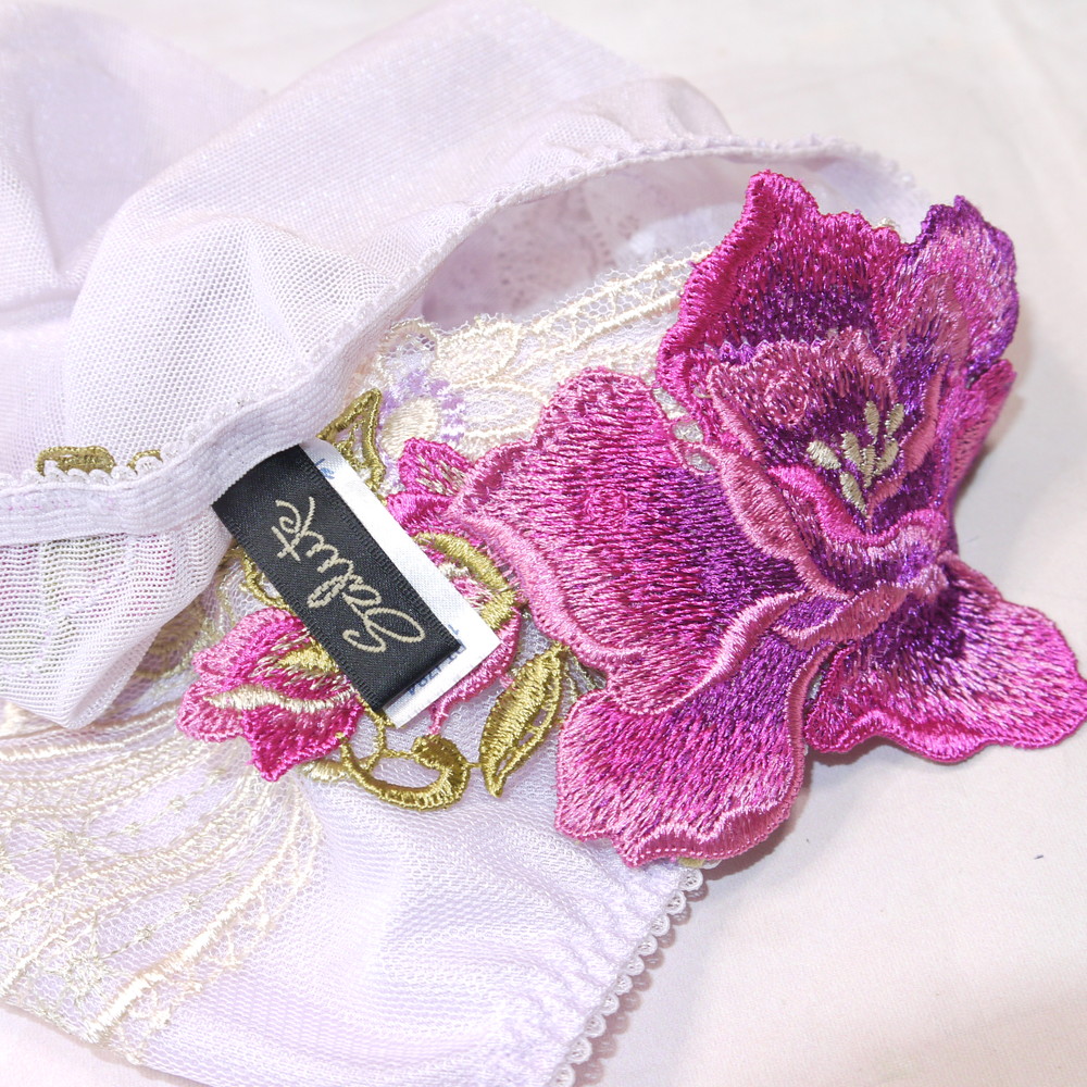 【BCランク/K43ー】サルート 84G:Mサイズ ★ オーラ!気品淡紫×大輪薔薇アップリケ 透けメッシュショーツ