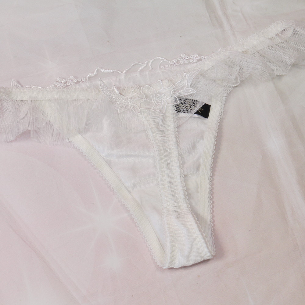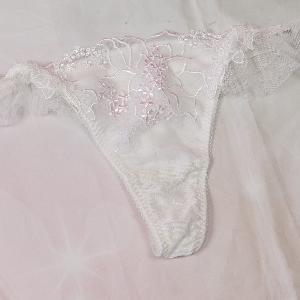 【Bランク/新古美品】サルート 90G:Mサイズ ★ 清楚感いっぱいの白×フリル 花弁レース刺繍 お姉様系ランジェ T