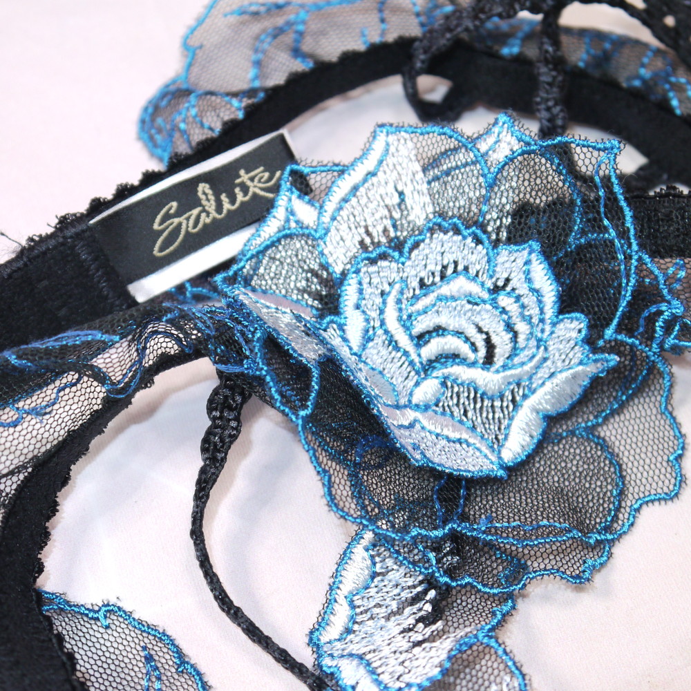 【Bランク/新古美品】サルート 90G:Mサイズ ★ アクアローズ!希少ブラック 大輪薔薇 ガーターベルト