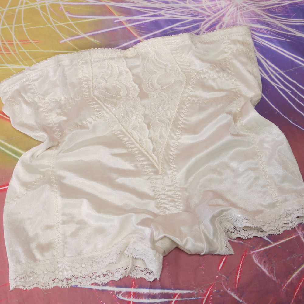 【CDランク】MLサイズ程度 ★ 大人アイボリー×光沢感 レース刺繍 着圧抜群 ガードルパンツ
