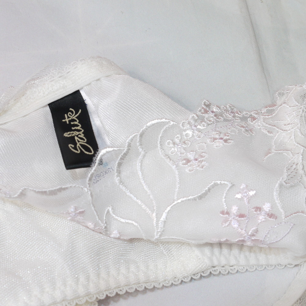 【BCランク/43ー】サルート 90G:Mサイズ ★ 廃盤希少!清楚で大人な白×花弁刺繍 艶妻系ランジェ T