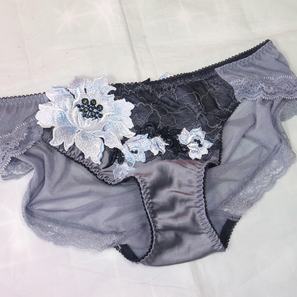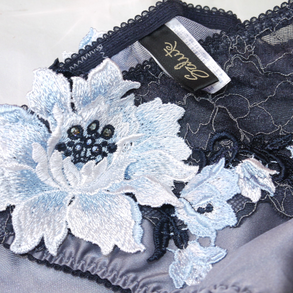 【BCランク/K43ー】サルート 94G:Lサイズ ★ マリアテレジア!グレー×大輪アップリケ スワロフ 透け尻SEXY ショーツ