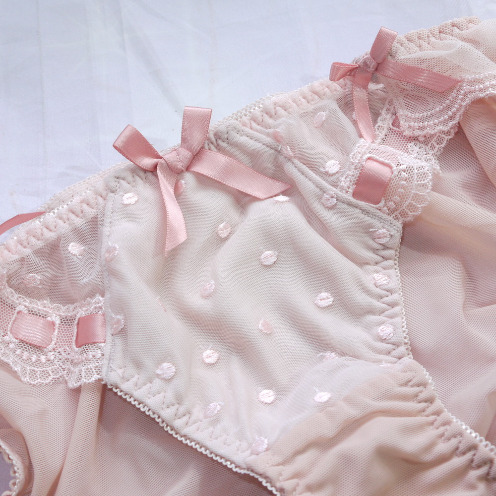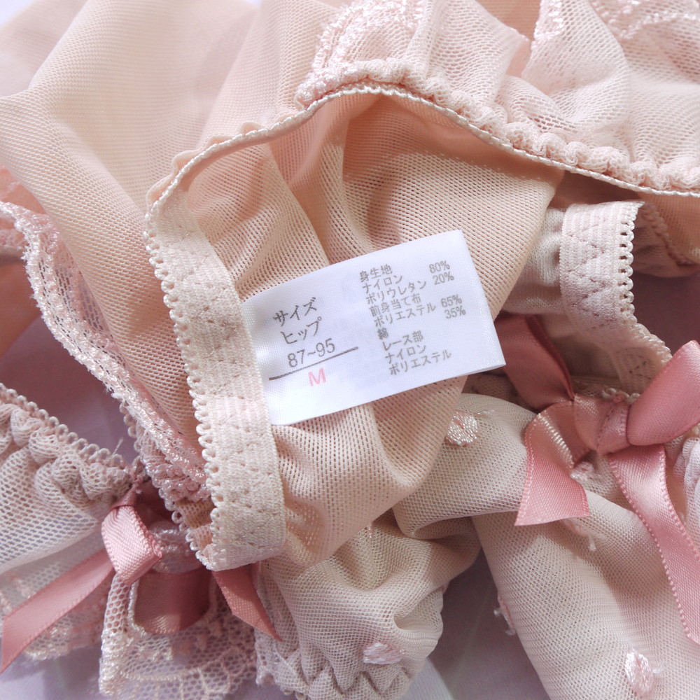 【Bランク/新古美品】ディノスセシール:Mサイズ ★ 超絶可愛いピンクベージュ×りぼんデザイン JCJK系 姫パンティ