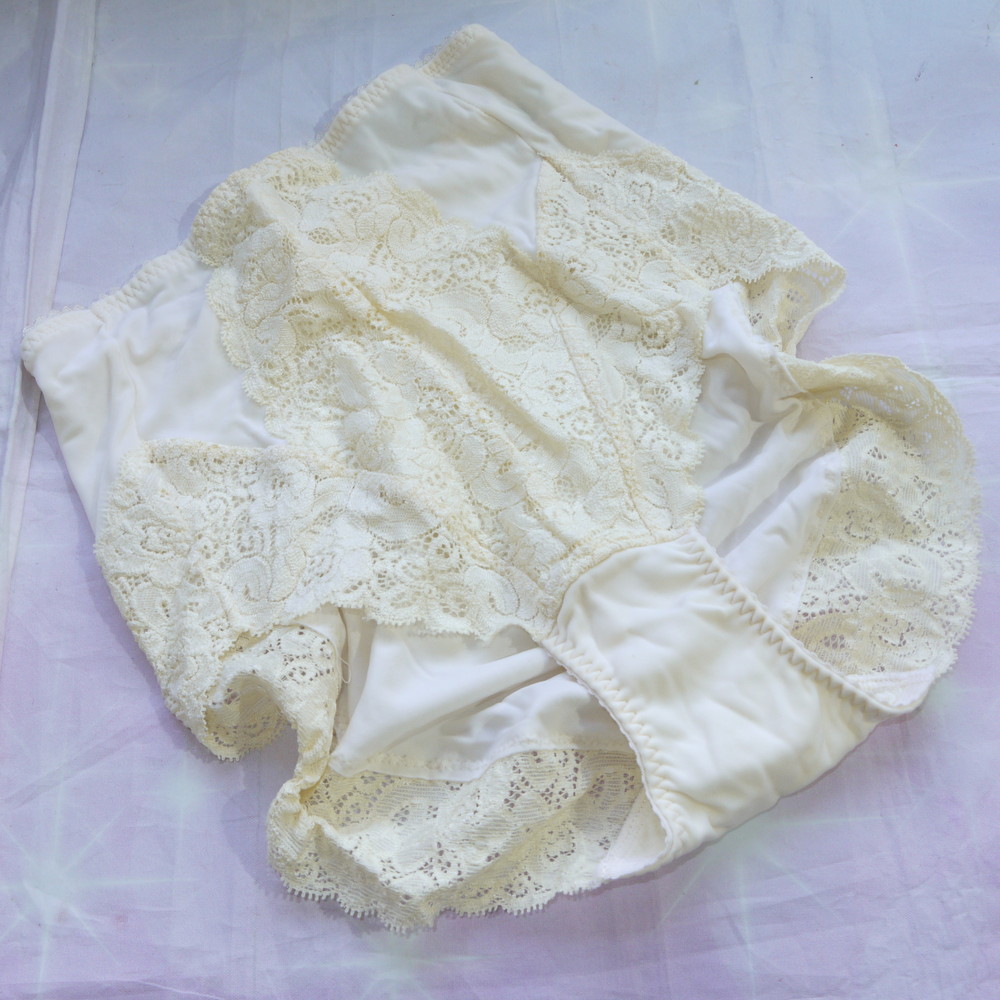 【Bランク/新古美品】ワコール:Lサイズ ★ やんわり淡黄 繊細レース 奥様系ガードルショーツ